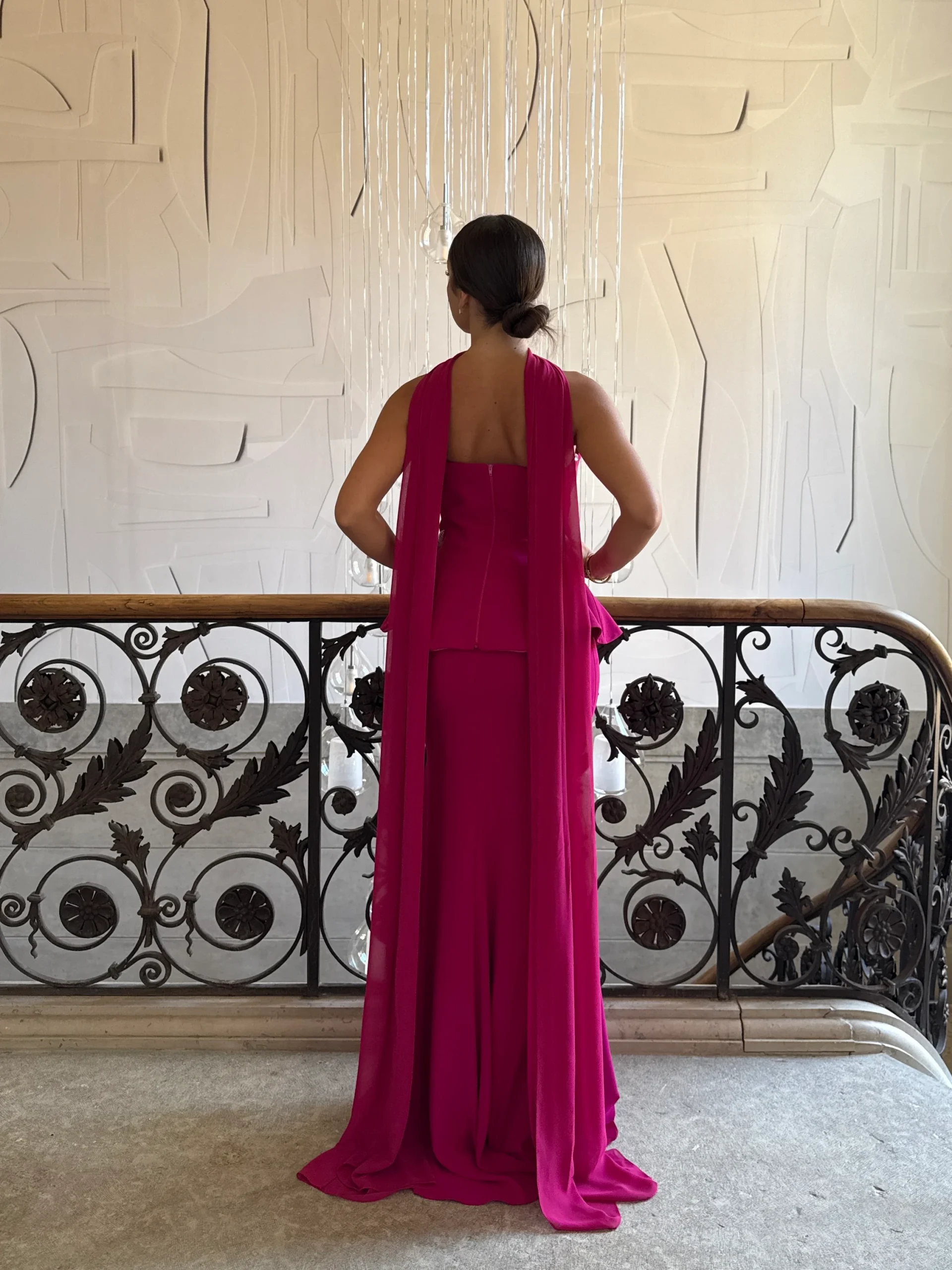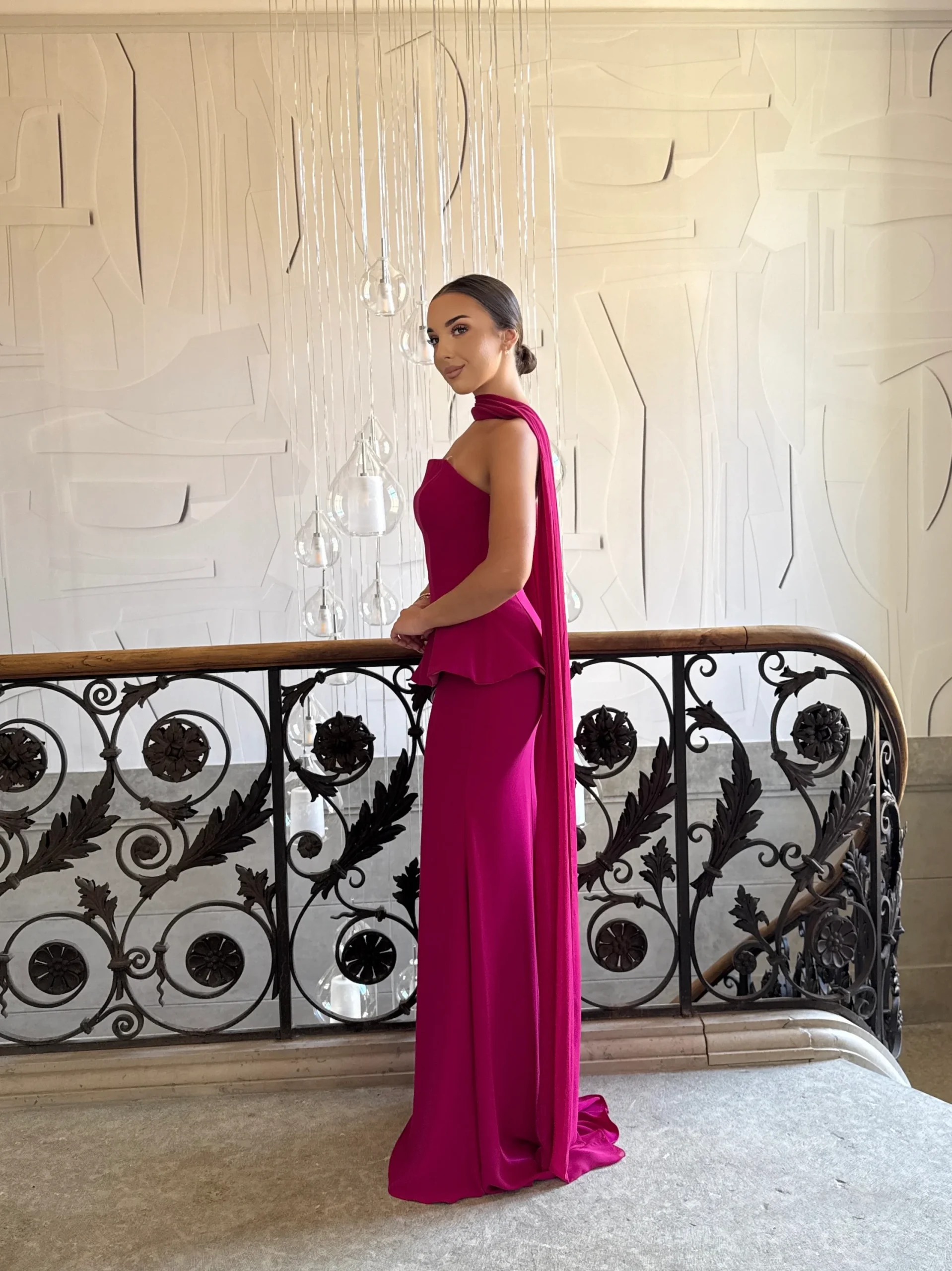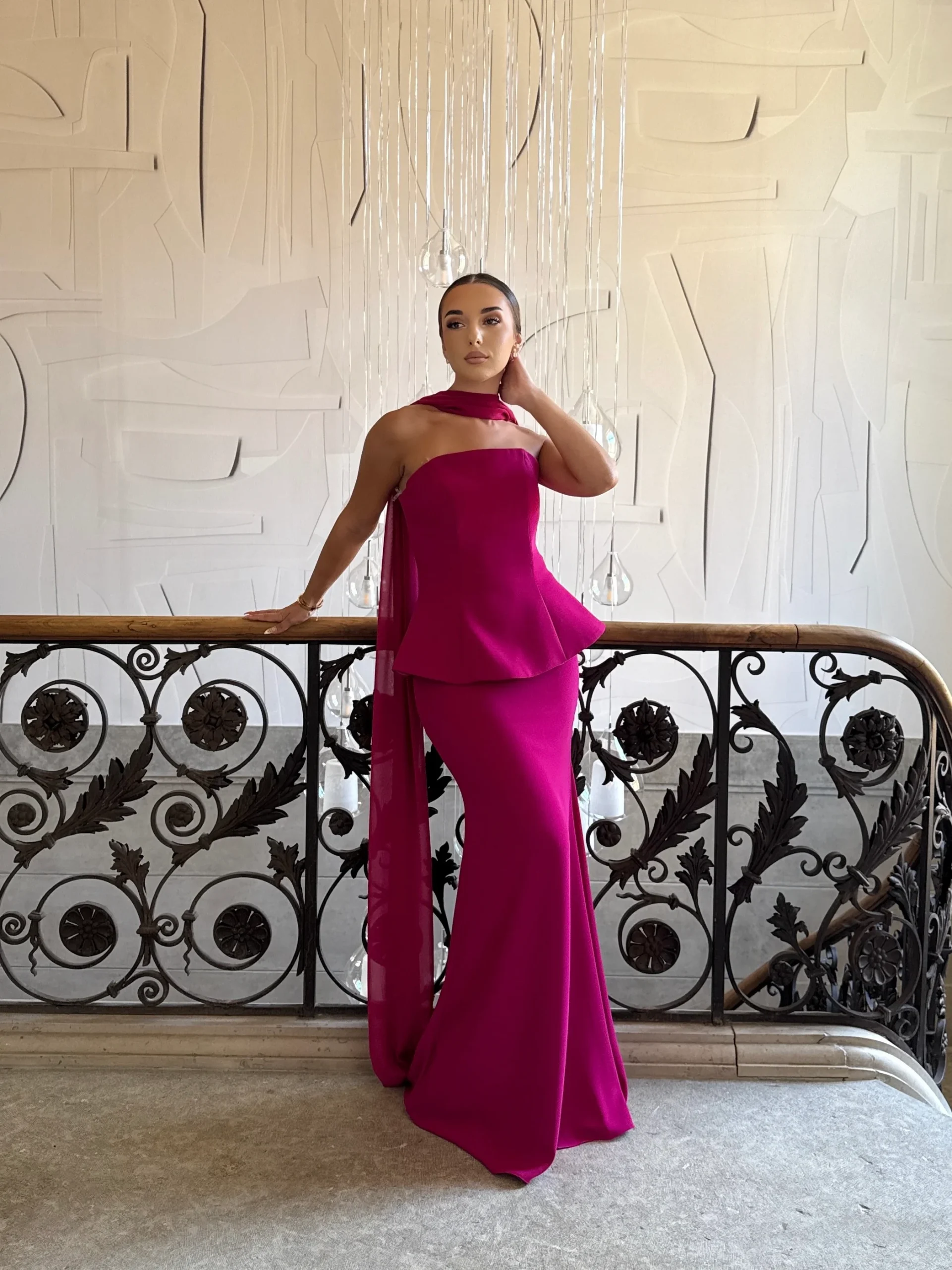 Robe de soirée élégante fushia, moderne et raffinée
