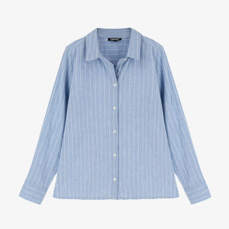Chemise en tissu effet chambray à rayures fantaisie coloris blanc