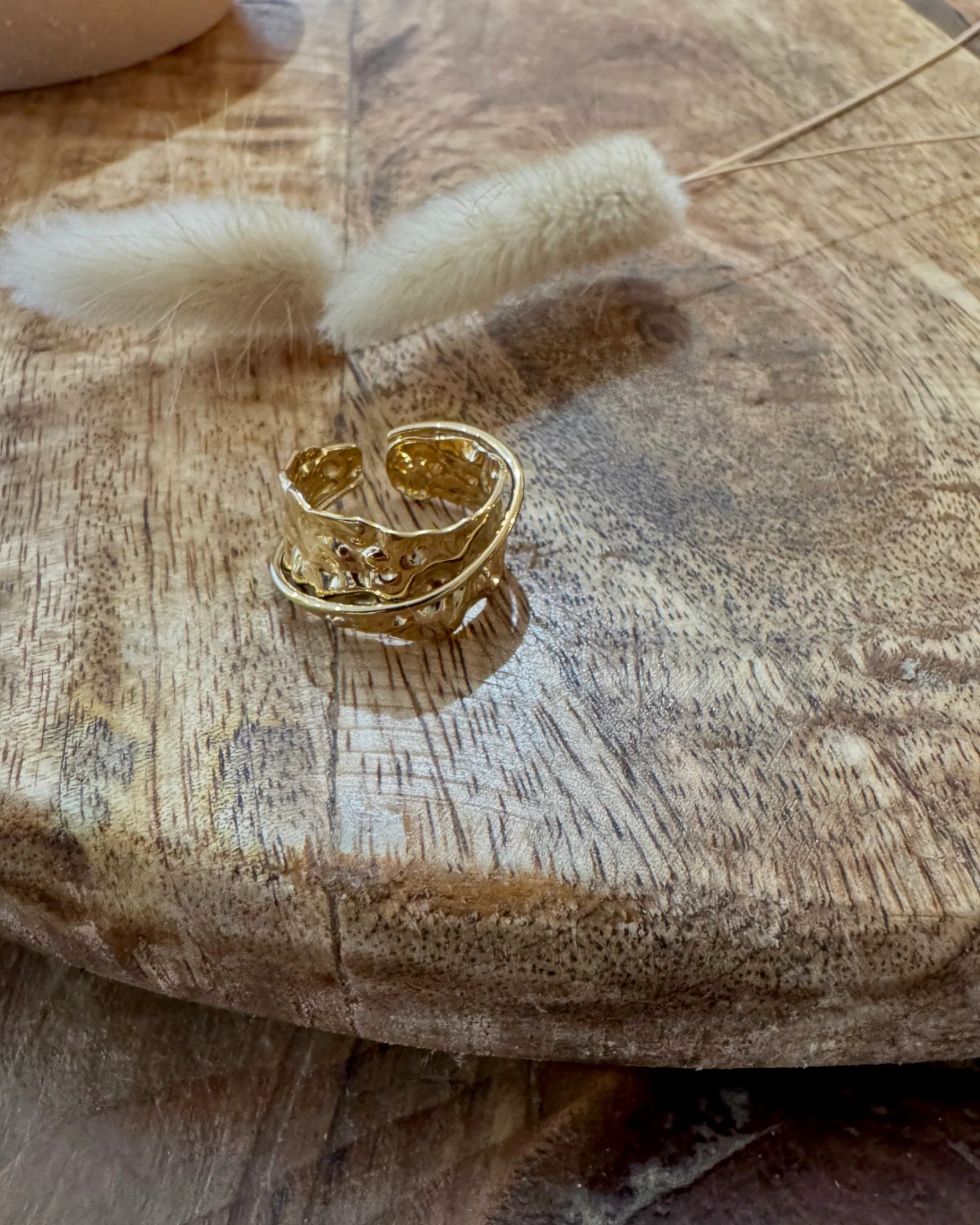 Bague Malia • Dorée • Acier Inoxydable • Ajustable • Mode d’expédition : Colissimo avec ou sans signature.• Livraison offerte à partir de 69€ d’achat