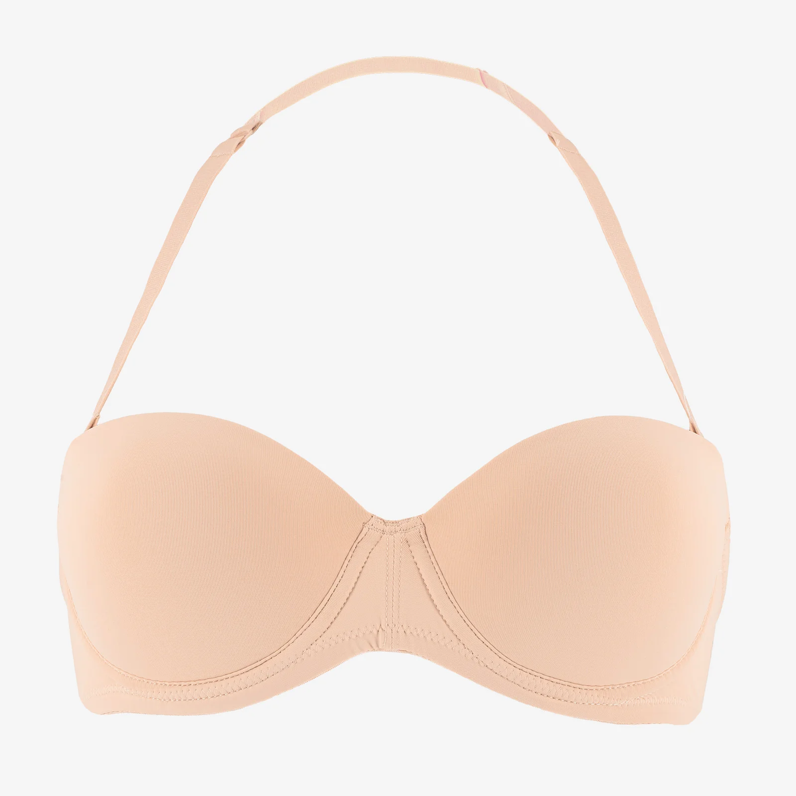 Bretelles : 2 jeux de bretelles disponibles. Bretelles satinées amovibles et réglables au dos, attache tour de cou. Bretelles transparentes pour un porté classique et discret.
