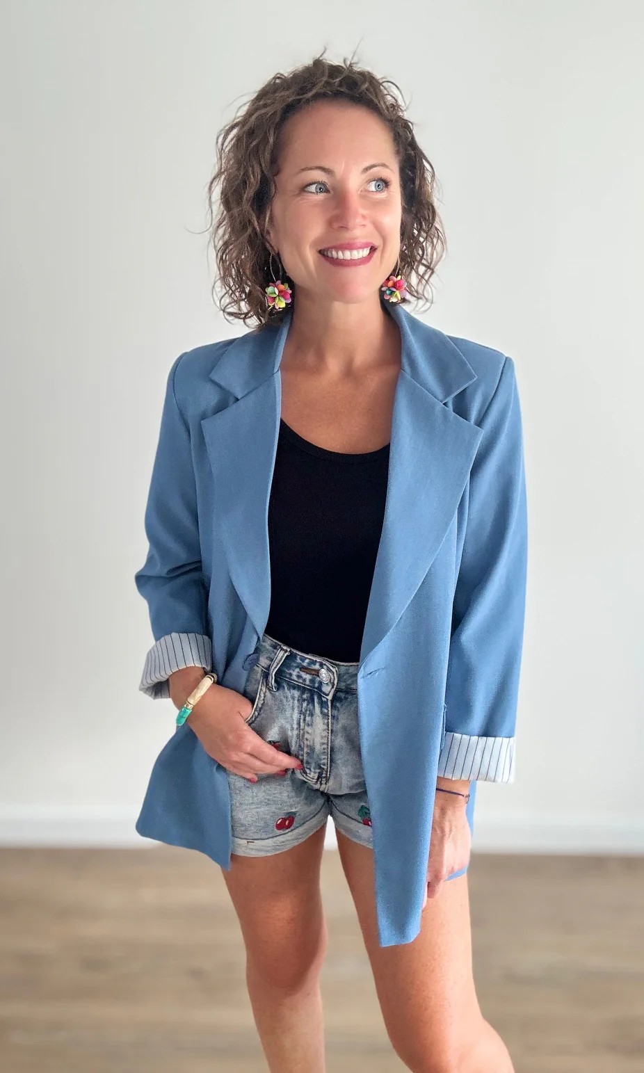 Associez ce blazer à un pantalon tailleur ou un jean slim blanc pour un look à la fois professionnel et tendance. Complétez avec des escarpins pour une touche sophistiquée ou des baskets pour un style casual-chic.