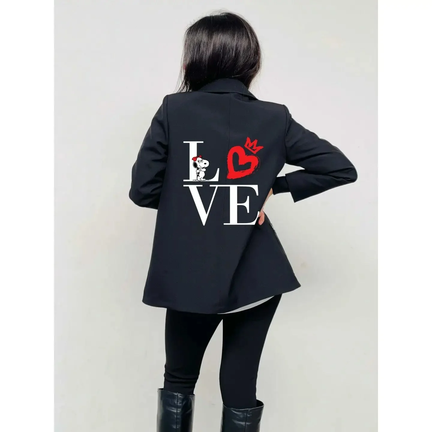 Un Design Qui Marque les Esprits : L’impression au dos est un véritable point fort, combinant modernité et caractère. Le cœur symbolise l’amour et l’élégance, tandis que le Snoopy apporte une touche subtile d’humour et de tendresse, rendant chaque port de ce blazer aussi mémorable qu’original.