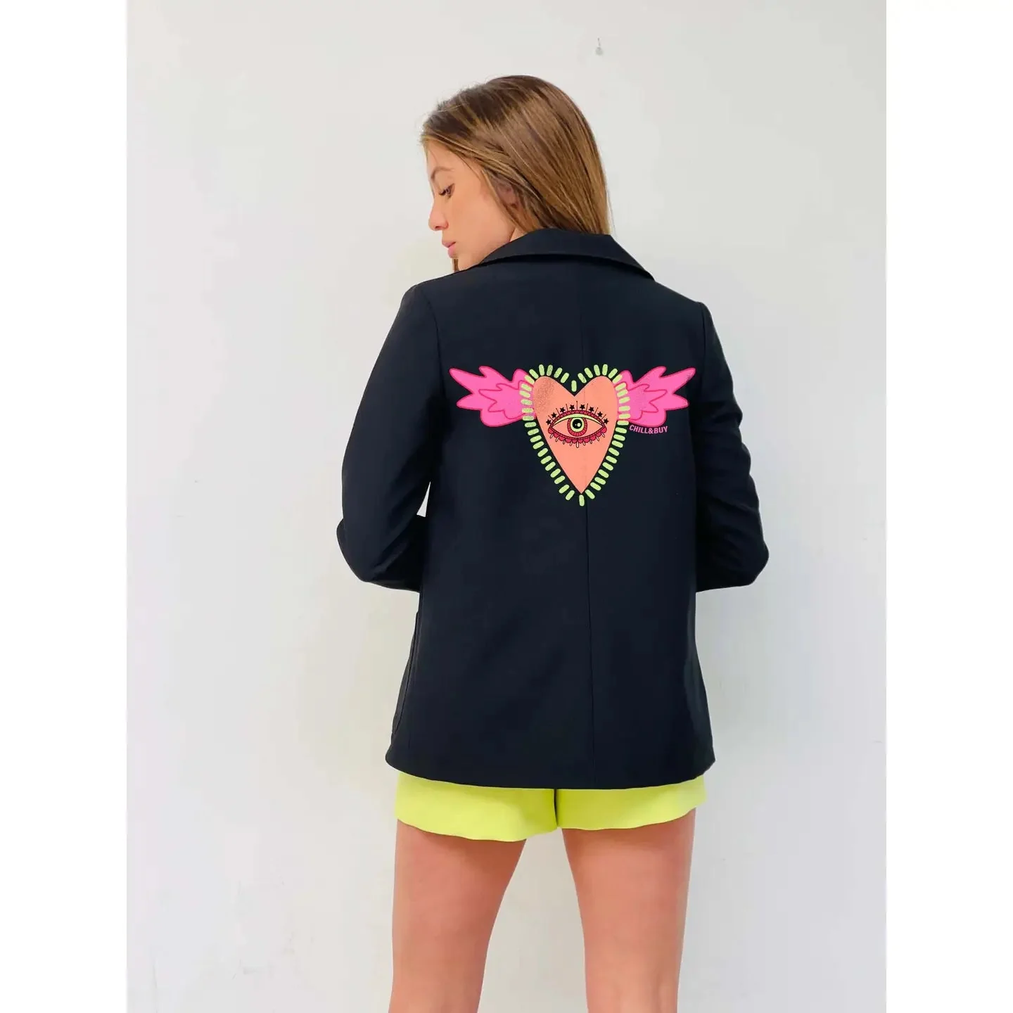 Blazer noir « Heart Wings » : Élégance classique et touche artistique
