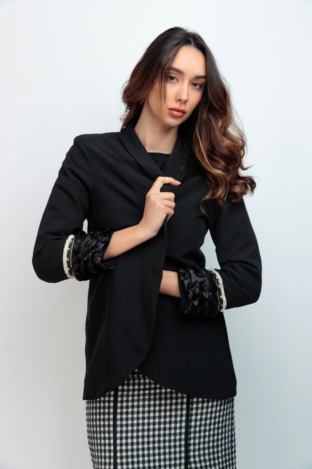 Le Blazer Smoking Sweet Love incarne l’élégance intemporelle et une touche de modernité audacieuse. Avec sa coupe smoking classique, ses détails luxueux et sa qualité artisanale, ce blazer transforme chaque tenue en une véritable déclaration de style.