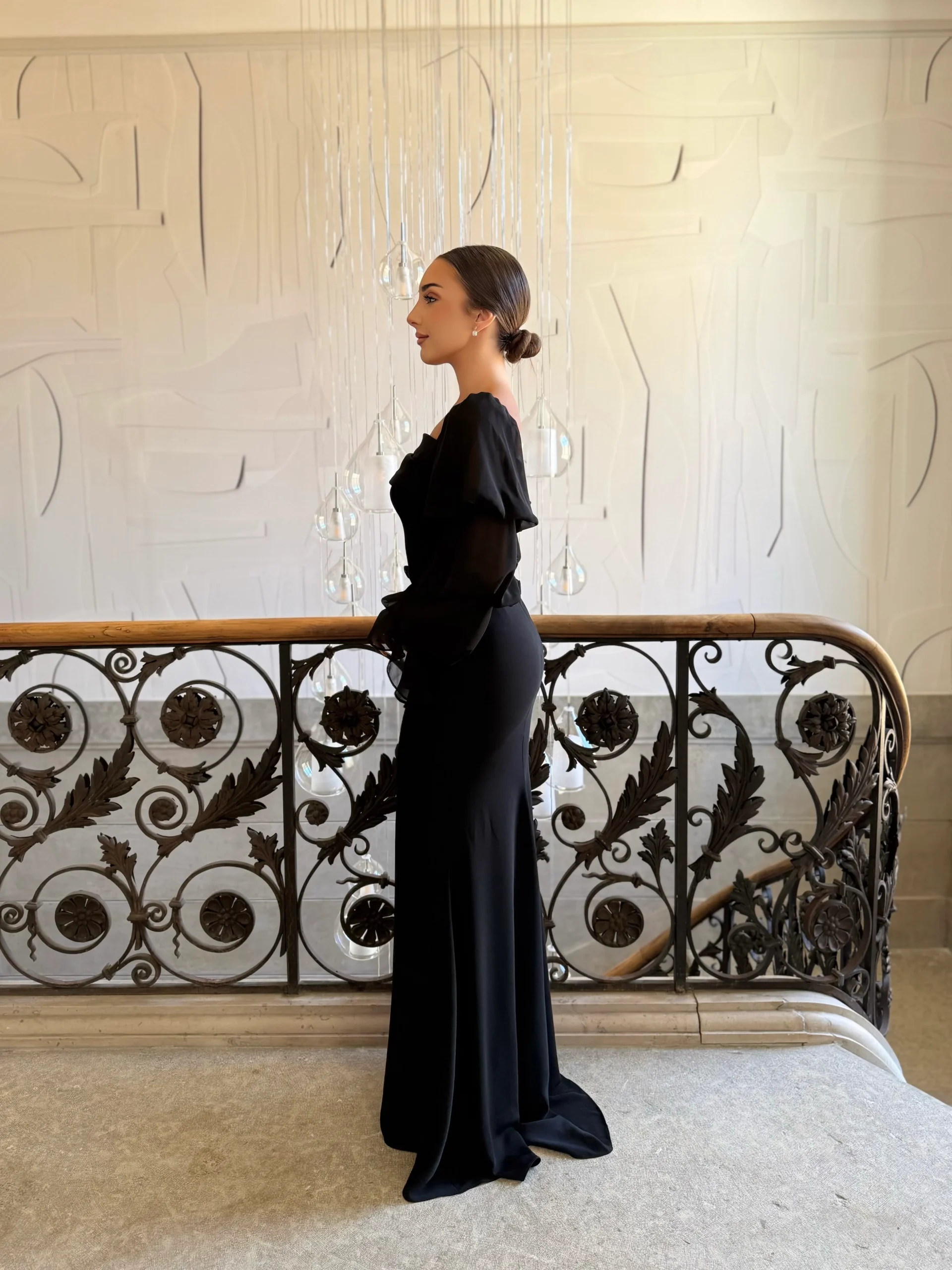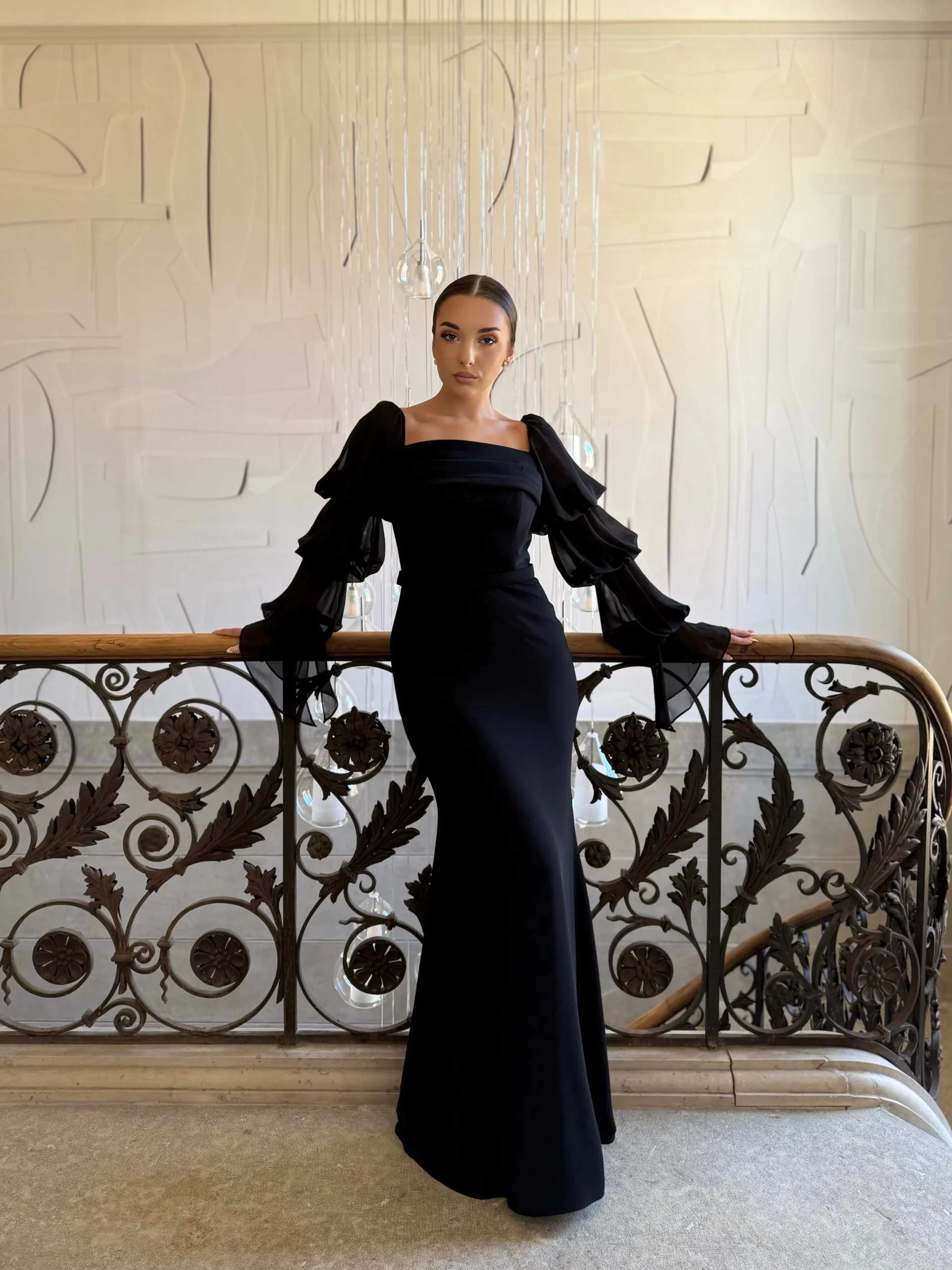 Cette robe de soirée élégante noir séduit par la pureté de ses lignes et la qualité de ses finitions. En effet, son tissu fluide épouse les courbes avec douceur, offrant un tombé impeccable. Par ailleurs, les manches longues légèrement bouffantes apportent une touche romantique et sophistiquée à l’ensemble. De même, le col carré met subtilement en valeur le port de tête. Ainsi, cette robe sans fente associe confort, grâce et prestance pour toutes les grandes occasions.