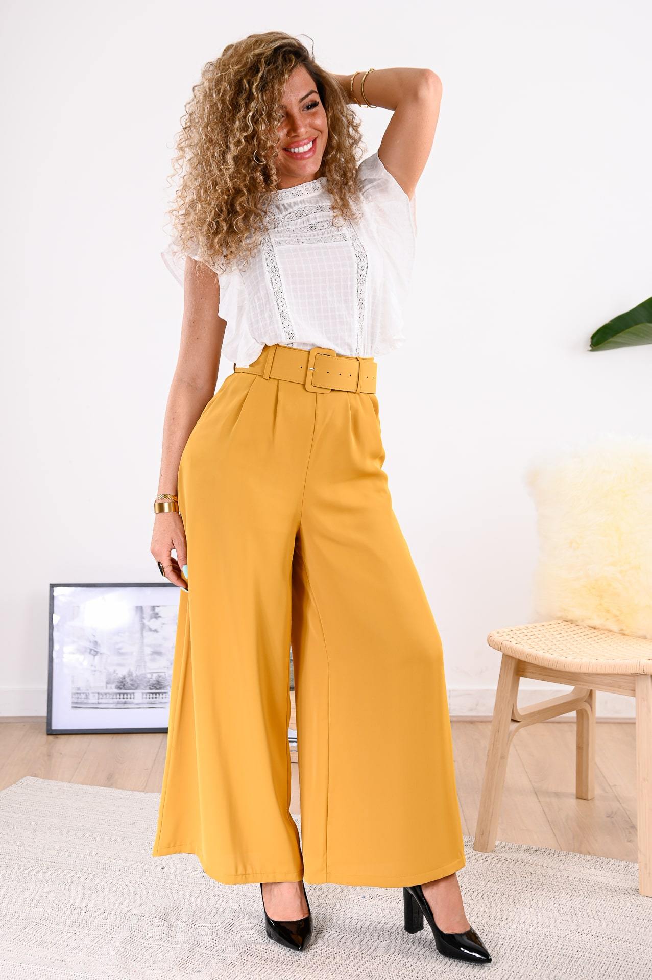 Pour aller travailler ou pour une soirée restau, la blouse est la pièce que l’on porte pour rester élégante et confortable. On craque surtout pour ses épaules volantées et sa dentelle. Pour être à la pointe de la tendance, portez cette blouse avec un jean taille haute, une petite ceinture noire et des escarpins vernis.