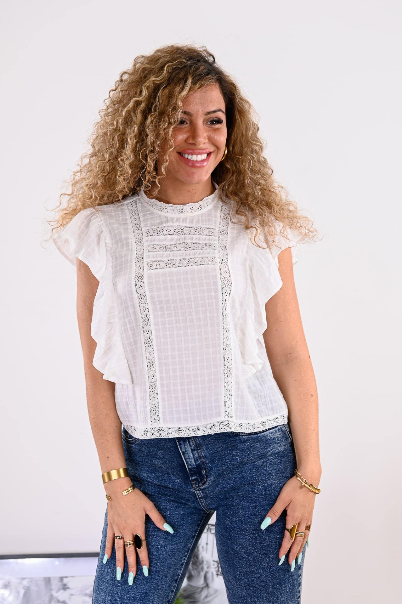 Blouse en dentelle blanche volantée