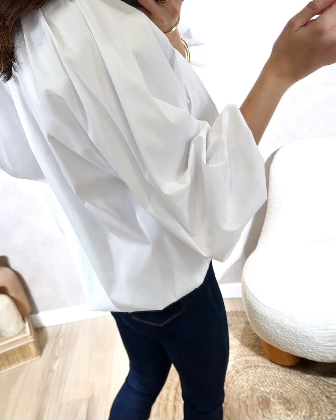 Blouse Hortense • Dos nu / Fermé par un nœud au niveau du cou • Manches mi longues • Le modèle mesure 1m65 et porte une taille unique • Composition : 100% coton • Mode d’expédition : Colissimo avec ou sans signature. • Livraison offerte à partir de 69€ d’achat