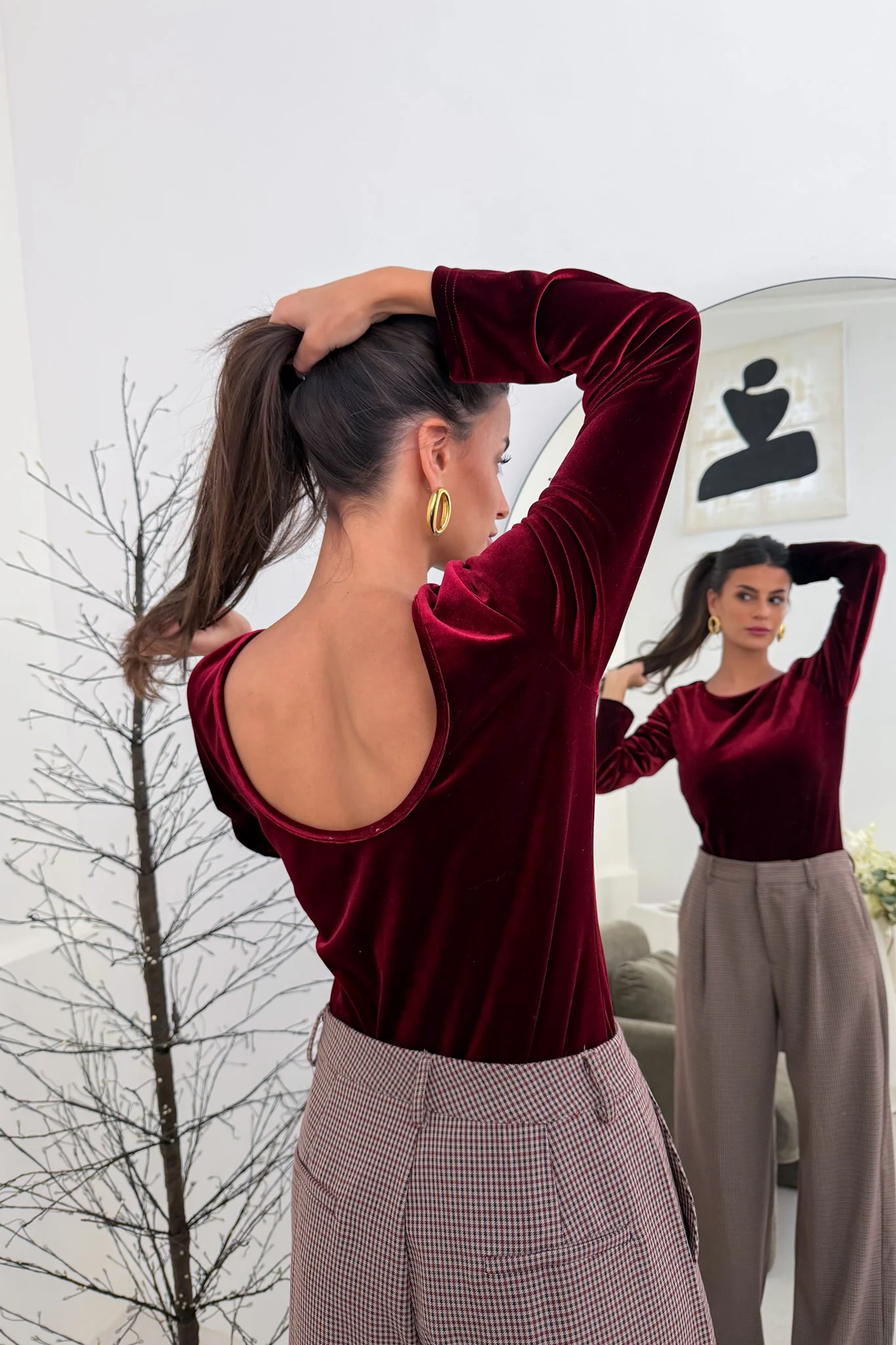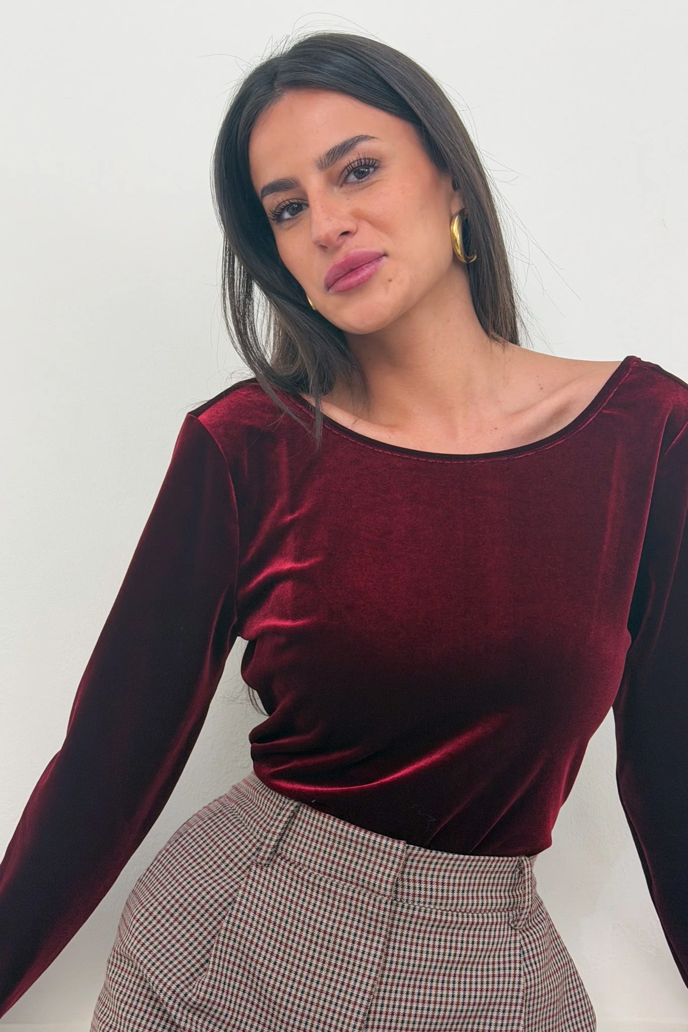 Body manches longues Effet velours Mesures à plat en CM : Carrure / Epaule : S 36 M 38 L 40 Poitrine : S 46 M 48 L 50 Longueur : S 73 M 76 L 79 La mannequin mesure 173cm et porte une taille S.