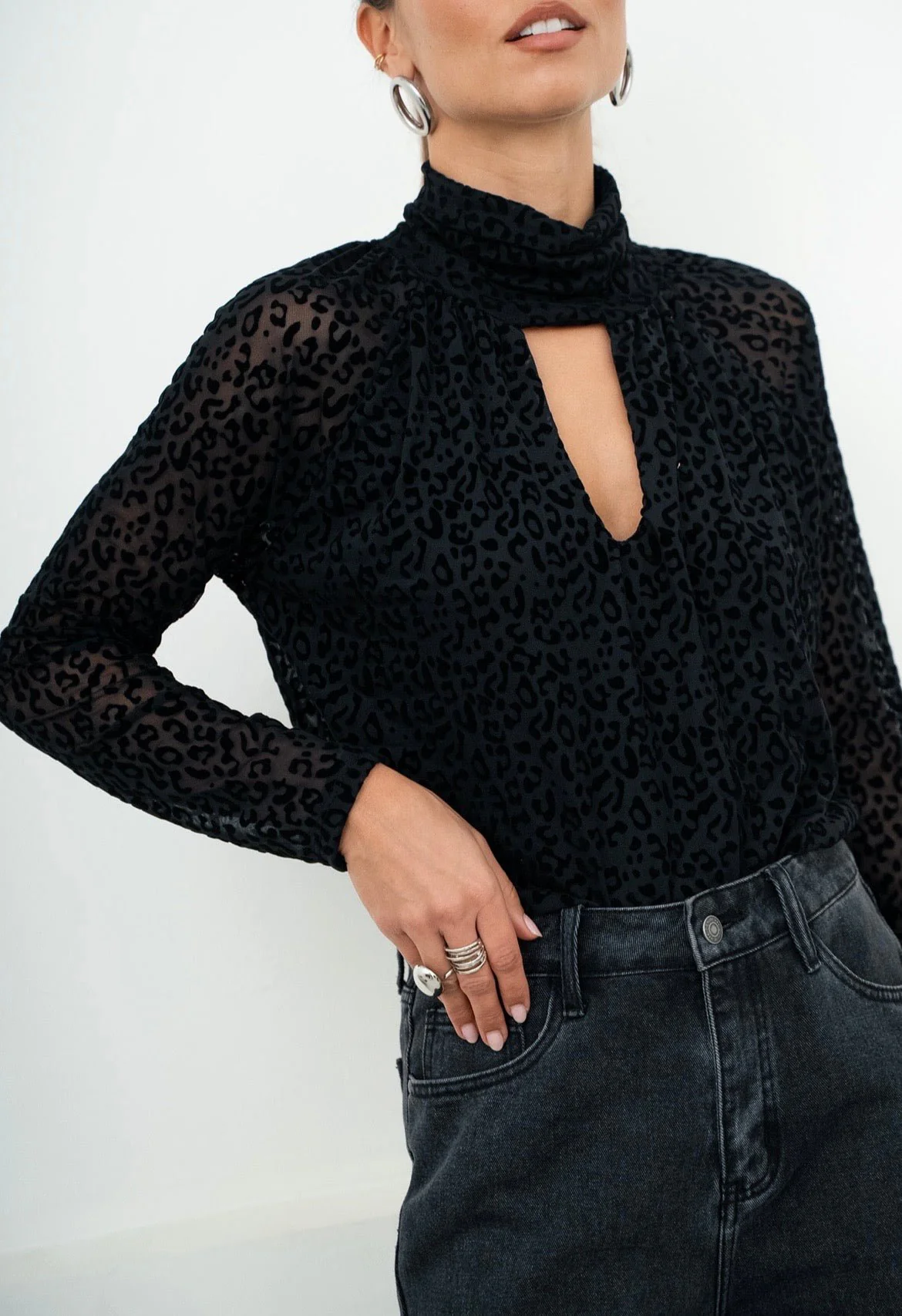Body manches longues Col montant avec ouverture Motif léopard Mesures à plat en CM : Poitrine : TU 52 Longueur depuis épaule : TU 75 La mannequin mesure 173cm et porte une taille unique.