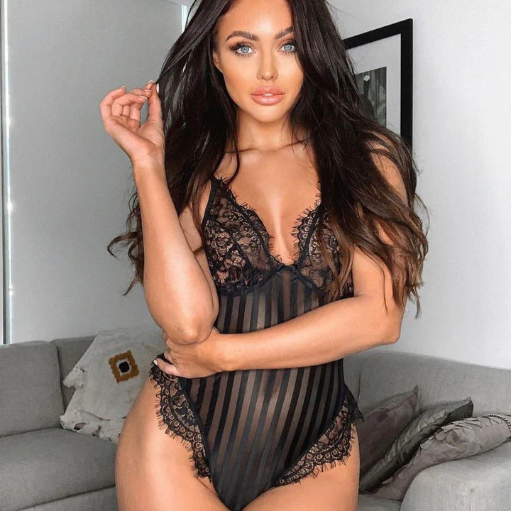 Body Dentelle à Rayures Black