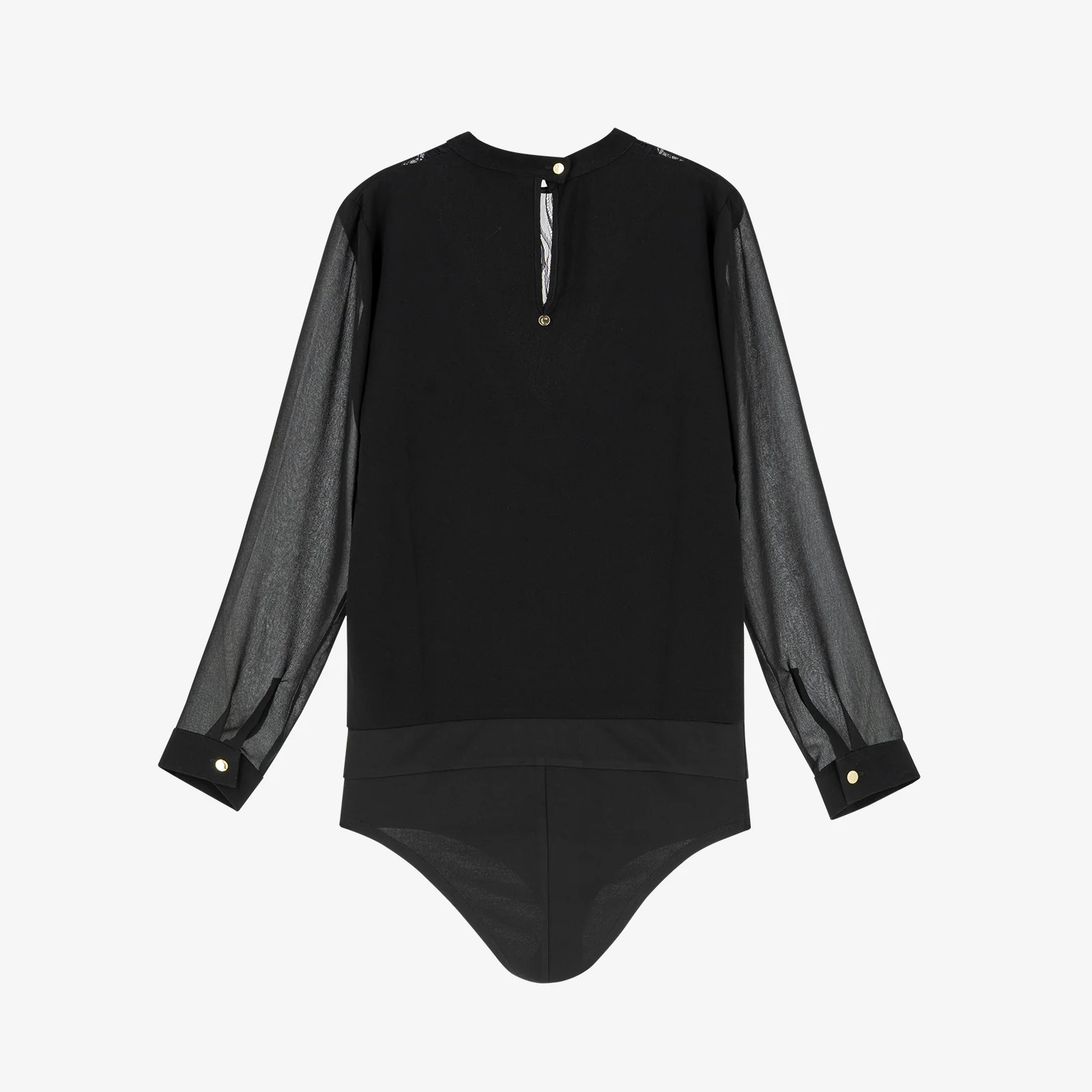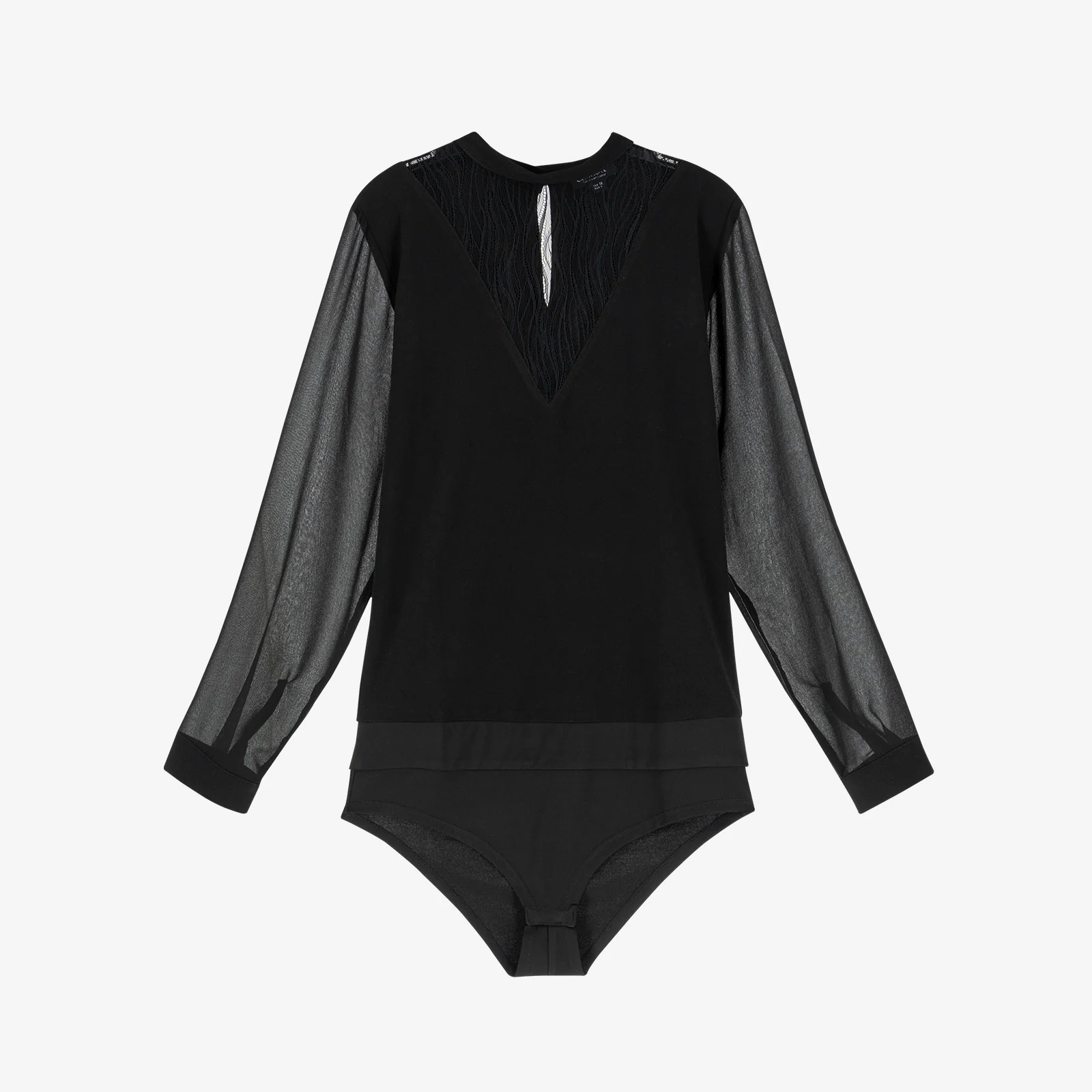 Guide des tailles Ouvrir le guide des tailles Description Body col rond réalisé dans un jeu de matières subtil et élégantCol rond rehaussé d’une dentelle graphique ajouréeCorps en crêpe fluide, léger et agréable sur la peau.Manches longues en voile aérienDes finitions précieuses :Poignets soulignés d’un bracelet fermé par un bouton à queue gravé coloris champagneFermeture […]