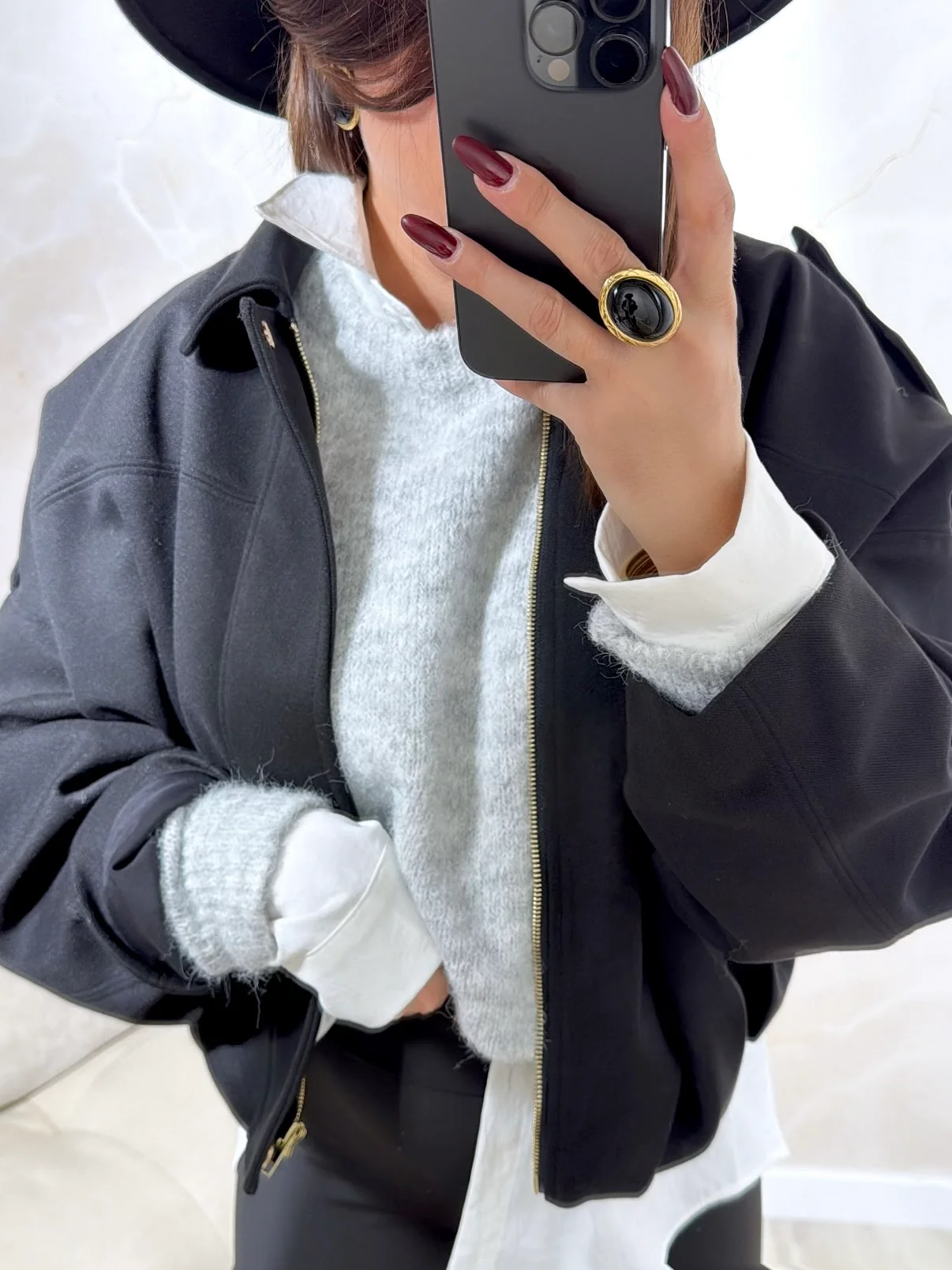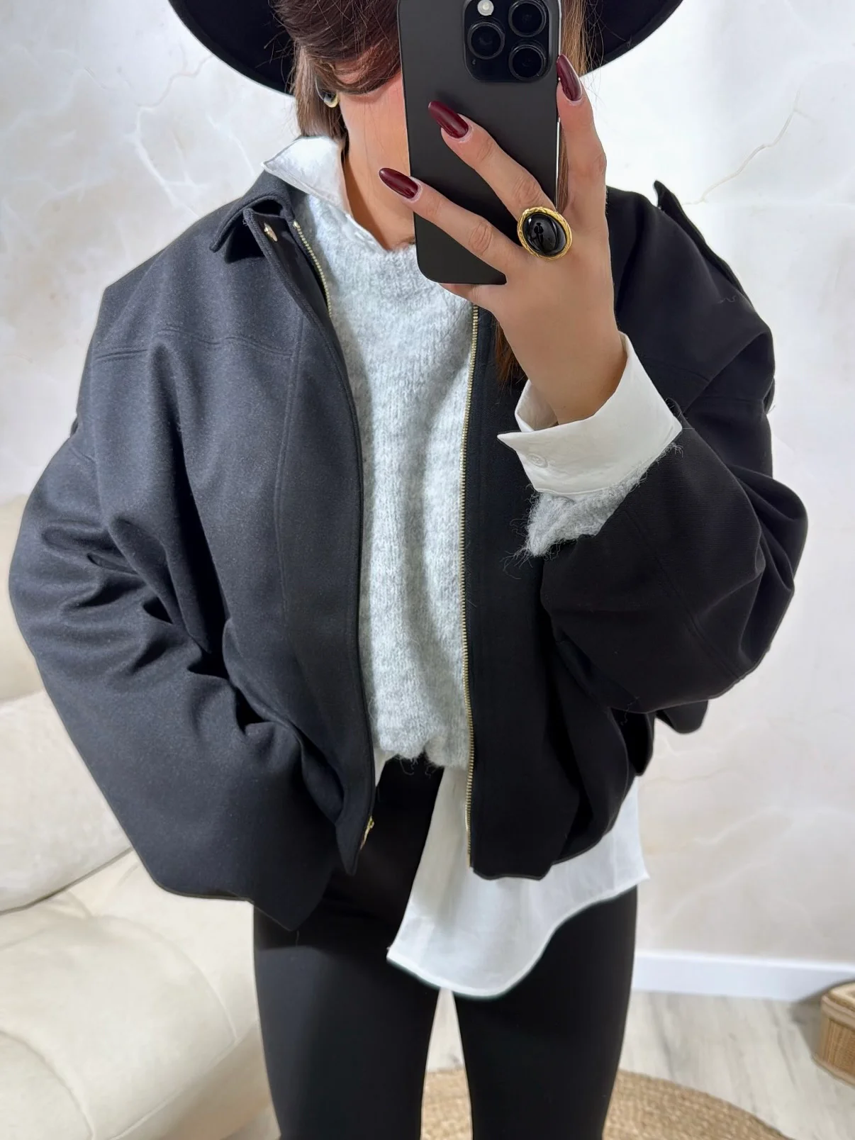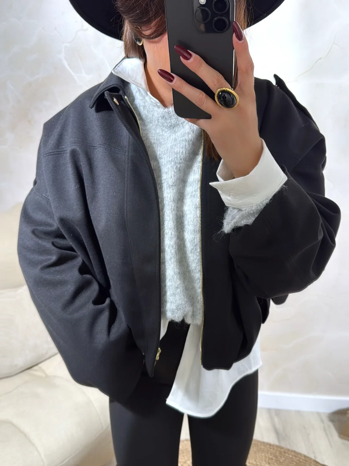 Bomber Cendre • Effet Daim • Fermeture avec Zip • Pauline mesure 1m65 et porte une taille S-M • Composition : 100% Polyester • Mode d’expédition : Colissimo avec ou sans signature. • Livraison offerte à partir de 69€ d’achat