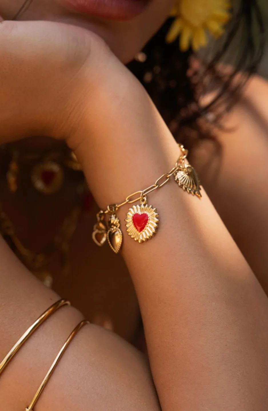 🔹 Coupe / Forme : Bracelet sur chaîne avec pendentifs cœurs