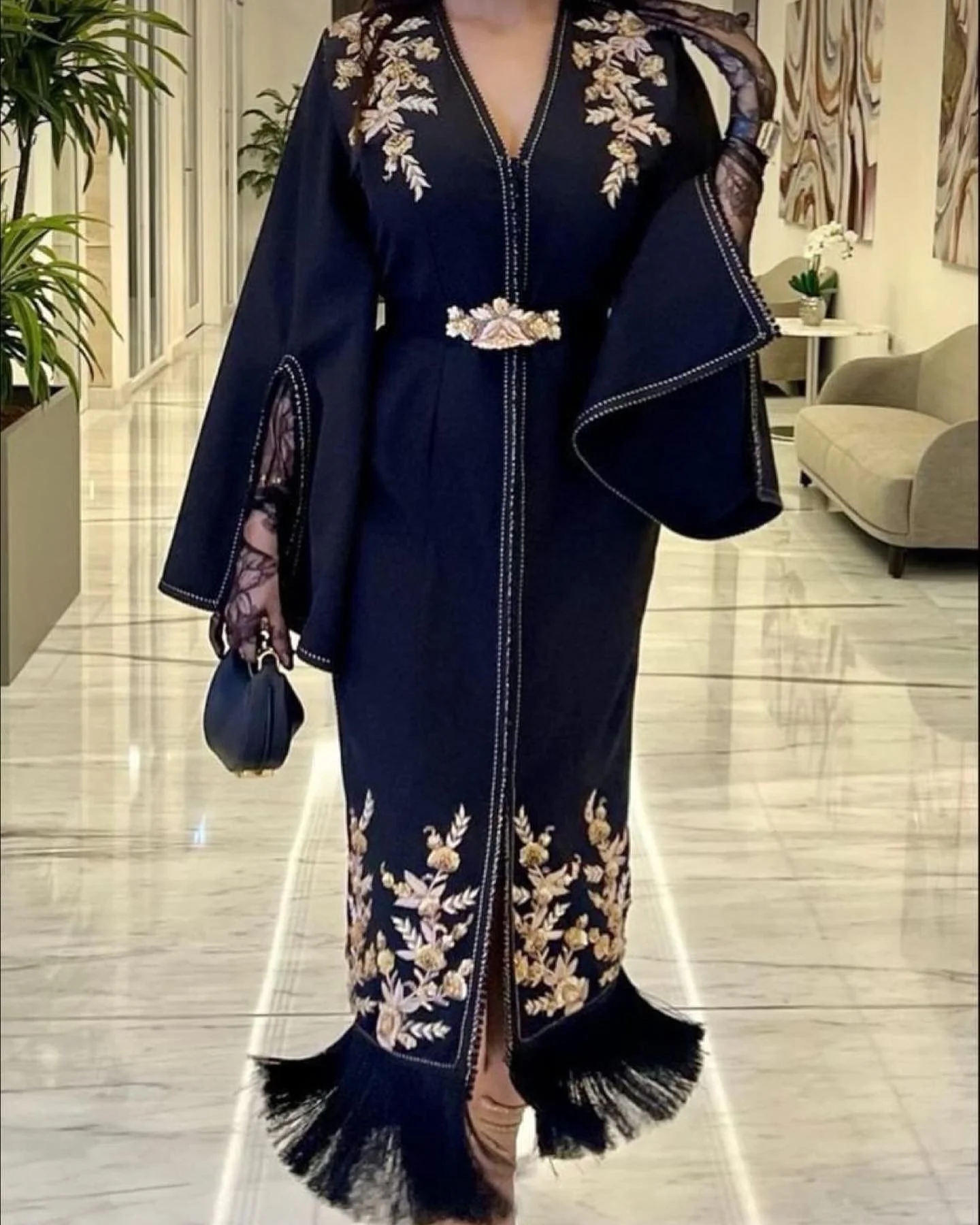 Inspiration caftan Sertie de broderies Avec cristaux Délai de confection 5 semaines