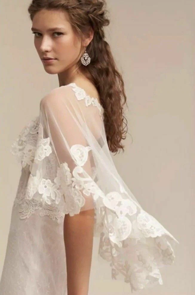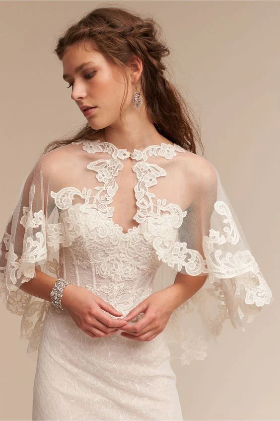 Cette cape de mariée est brodée à la main sur une base de tulle transparent. Elle sublimera votre robe de mariée bohème. Cette cape courte épouse parfaitement les épaules de la mariée. Elle vous donnera une allure féminine et élégante et apportera une touche d’originalité à votre tenue.