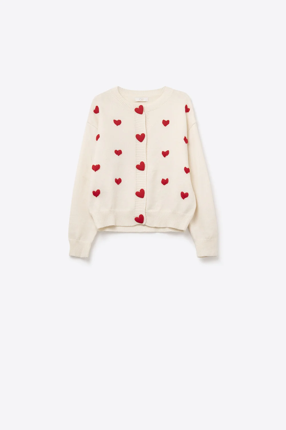 Cardigan court en maille avec manches d’ange et vagues multicouleures en beige