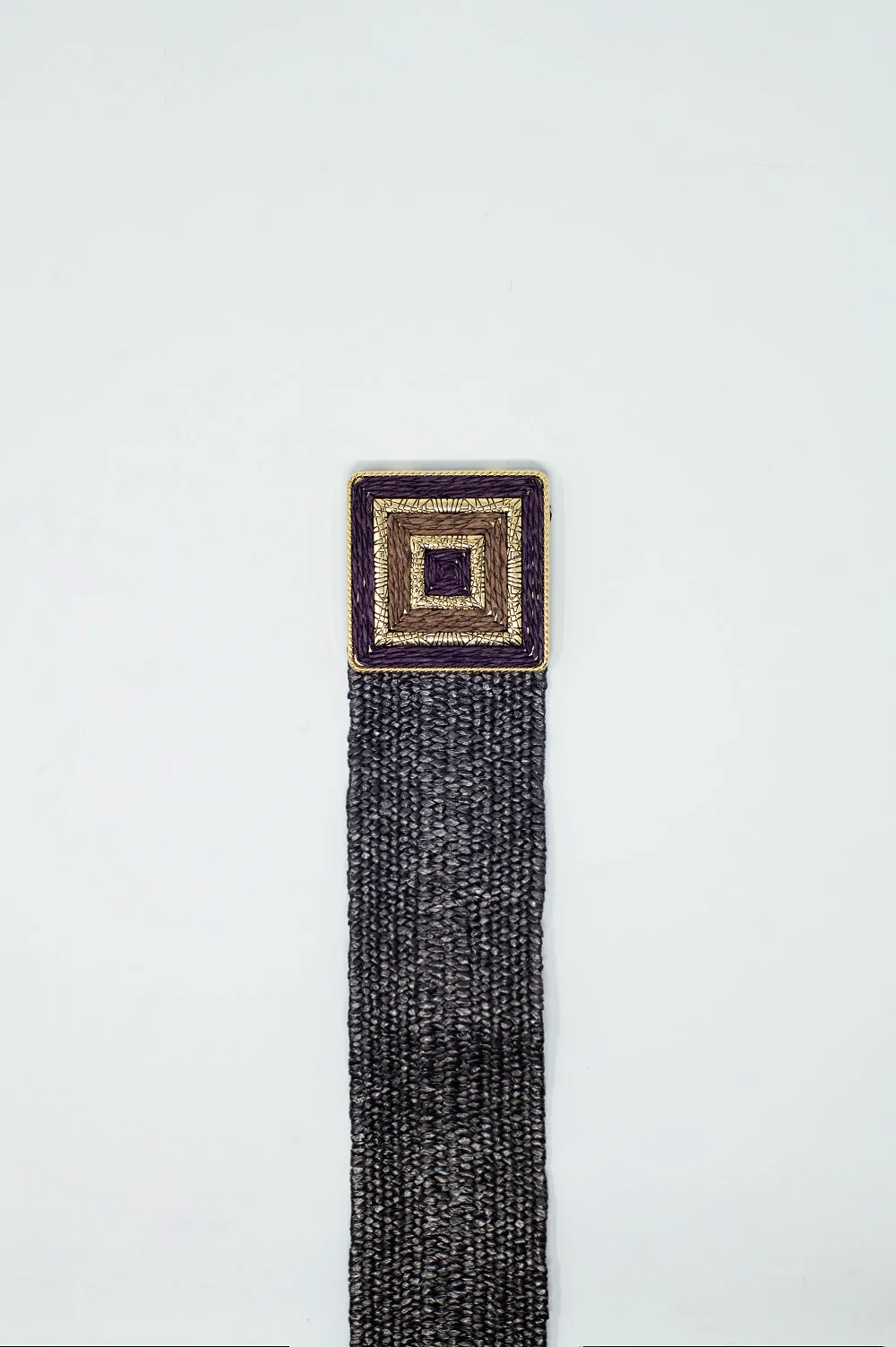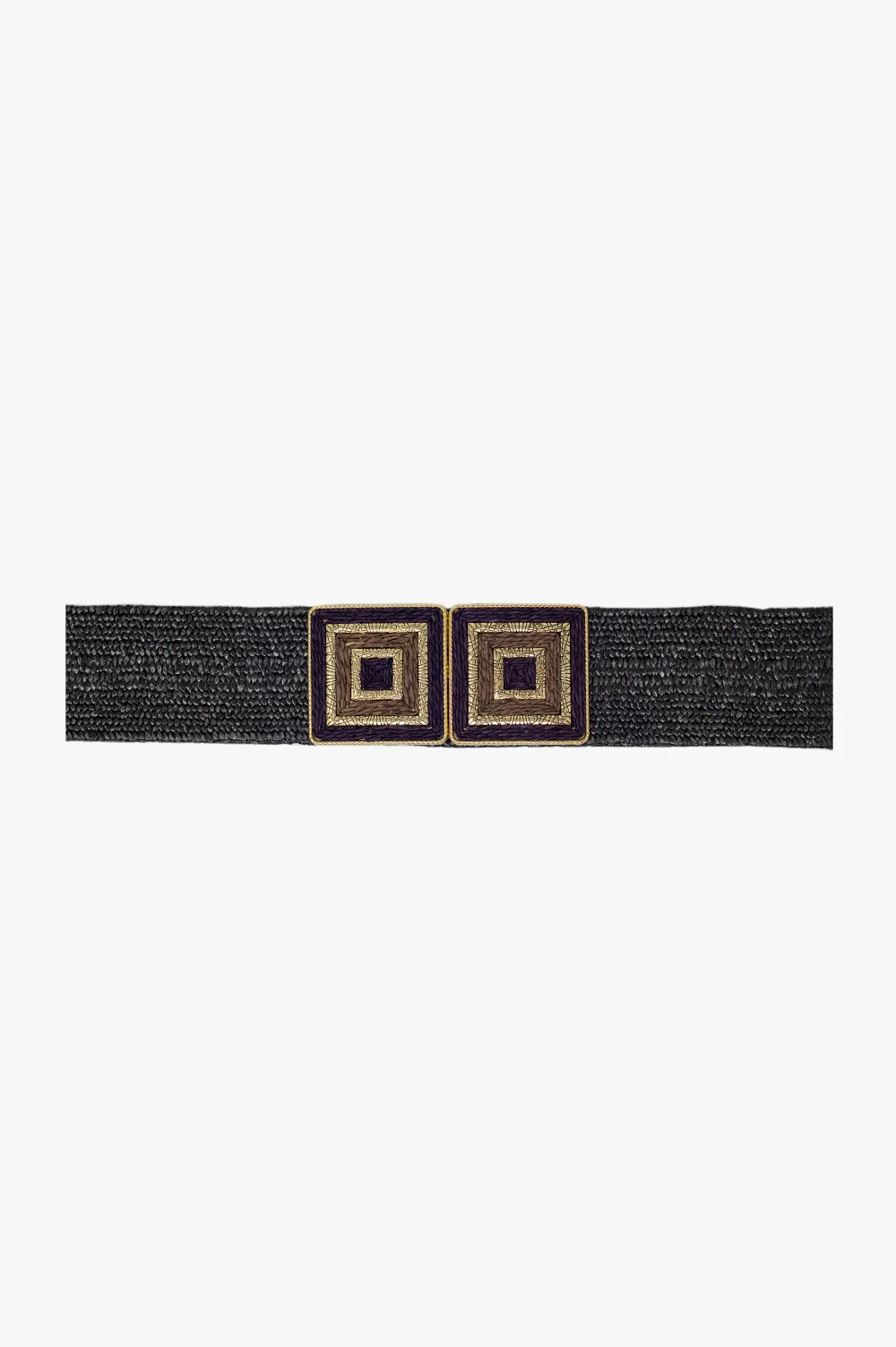 Ceinture tissée marron avec boucle carrée et détails dorés