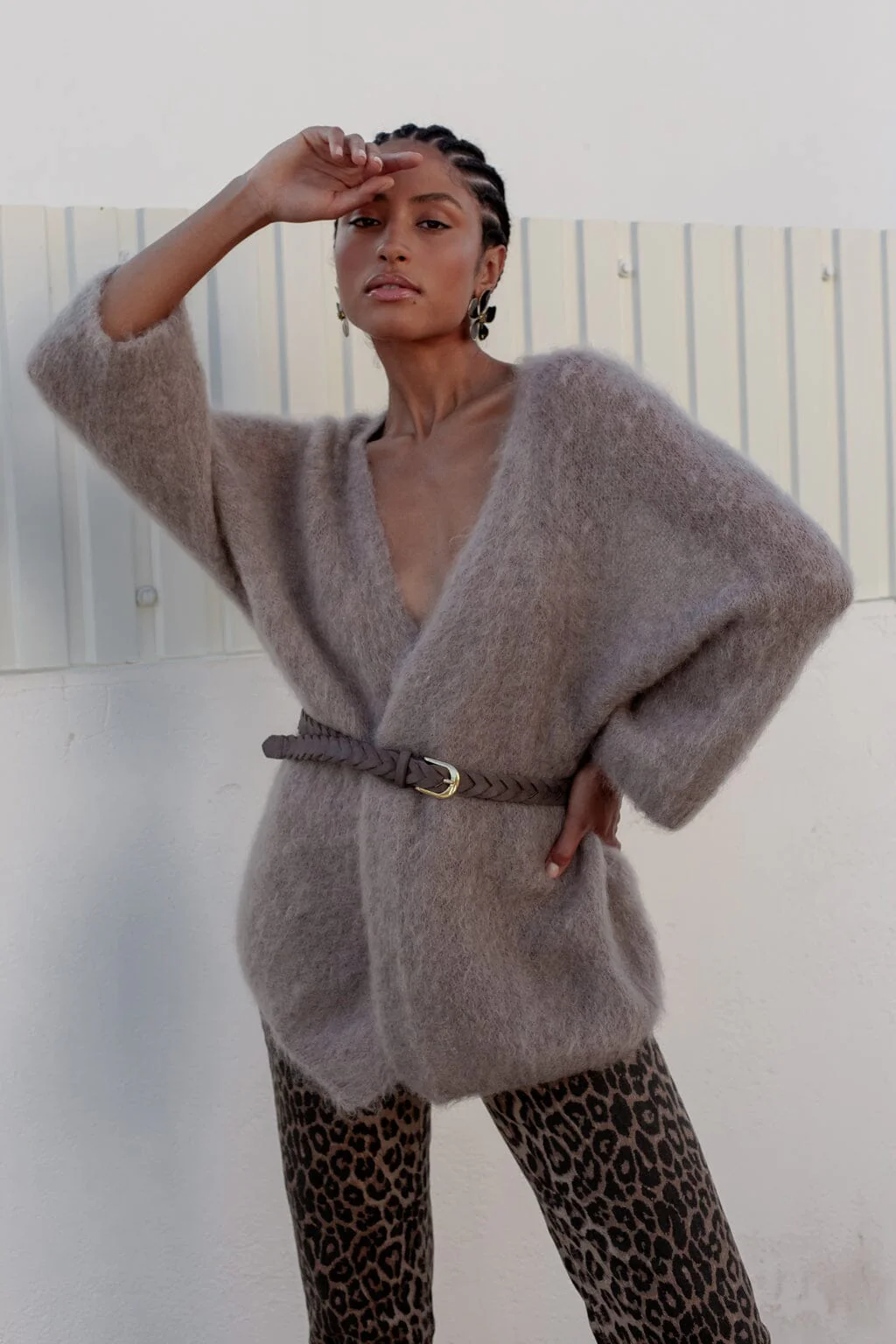 Ceinture tissée marron avec boucle carrée et détails dorés