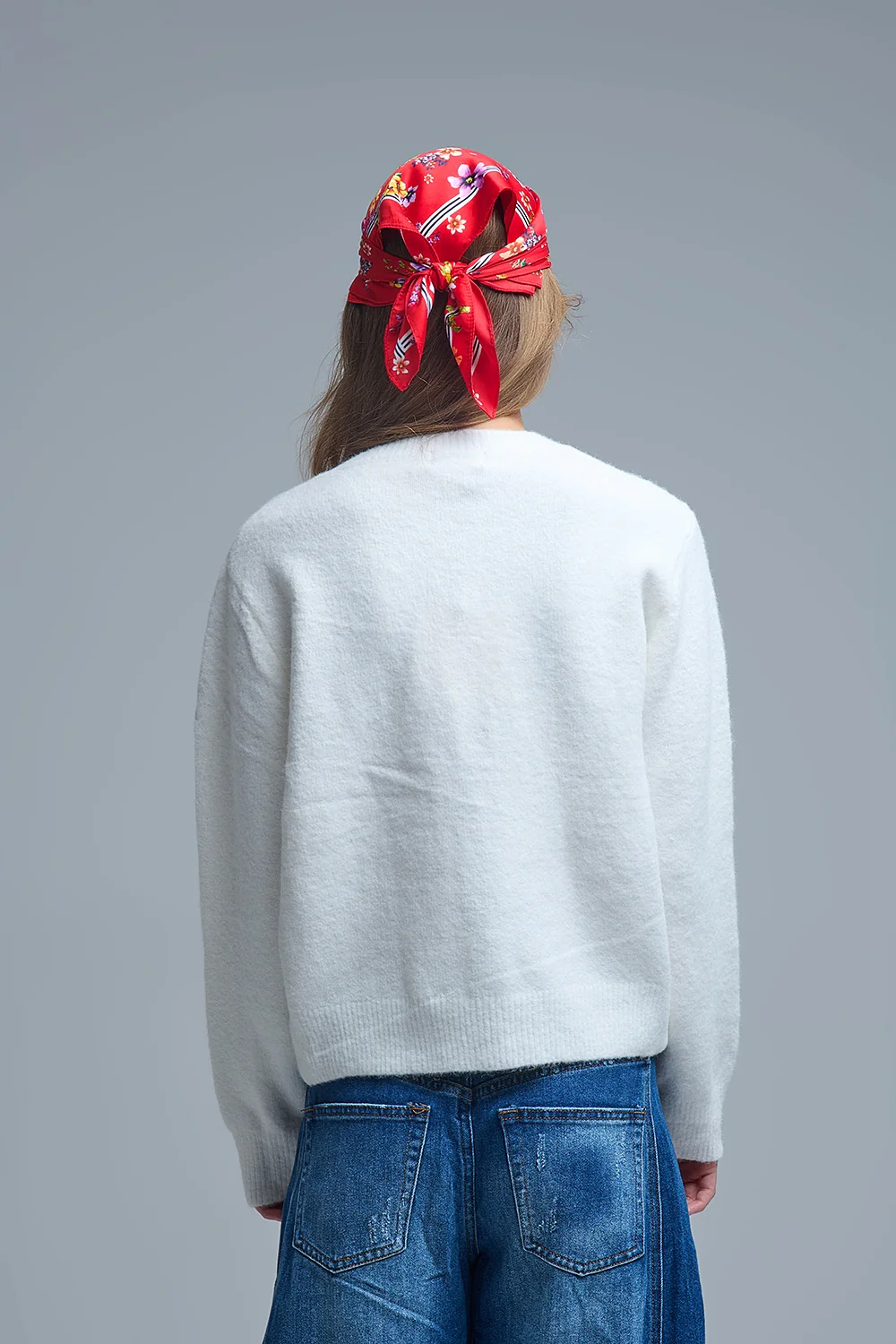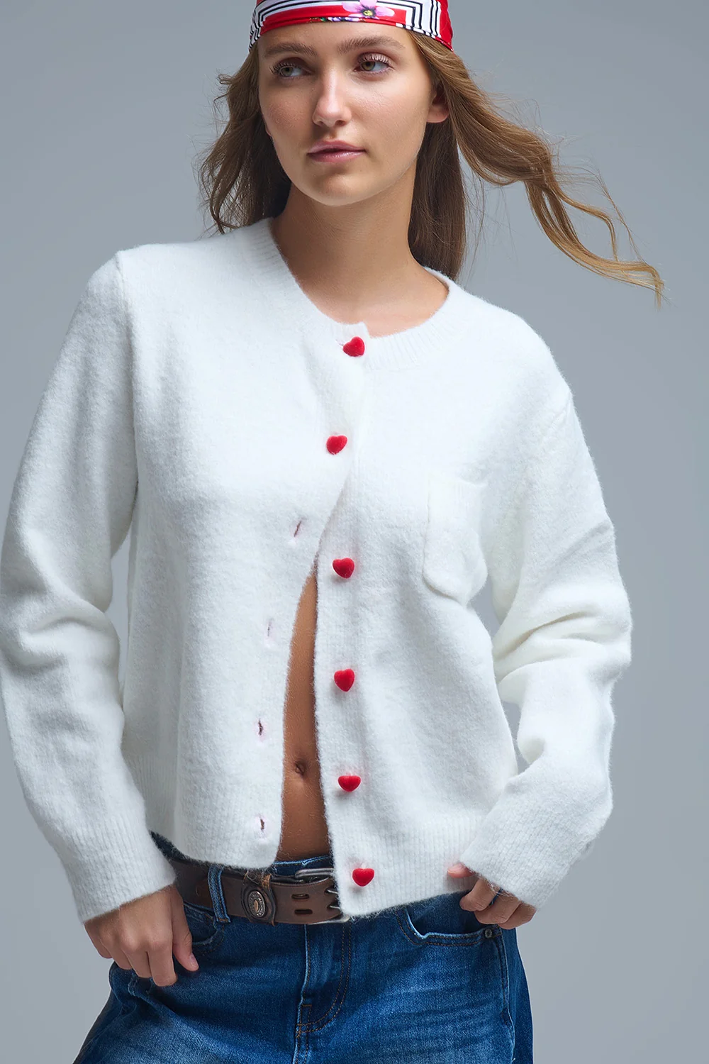 Cardigan blanc avec cœurs rouges