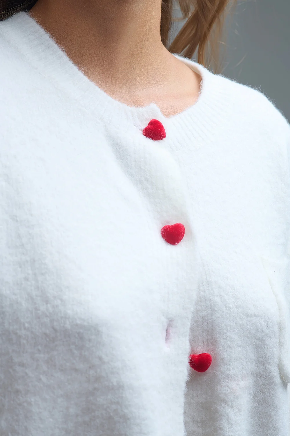 Charmant cardigan blanc avec boutons en forme de cœur