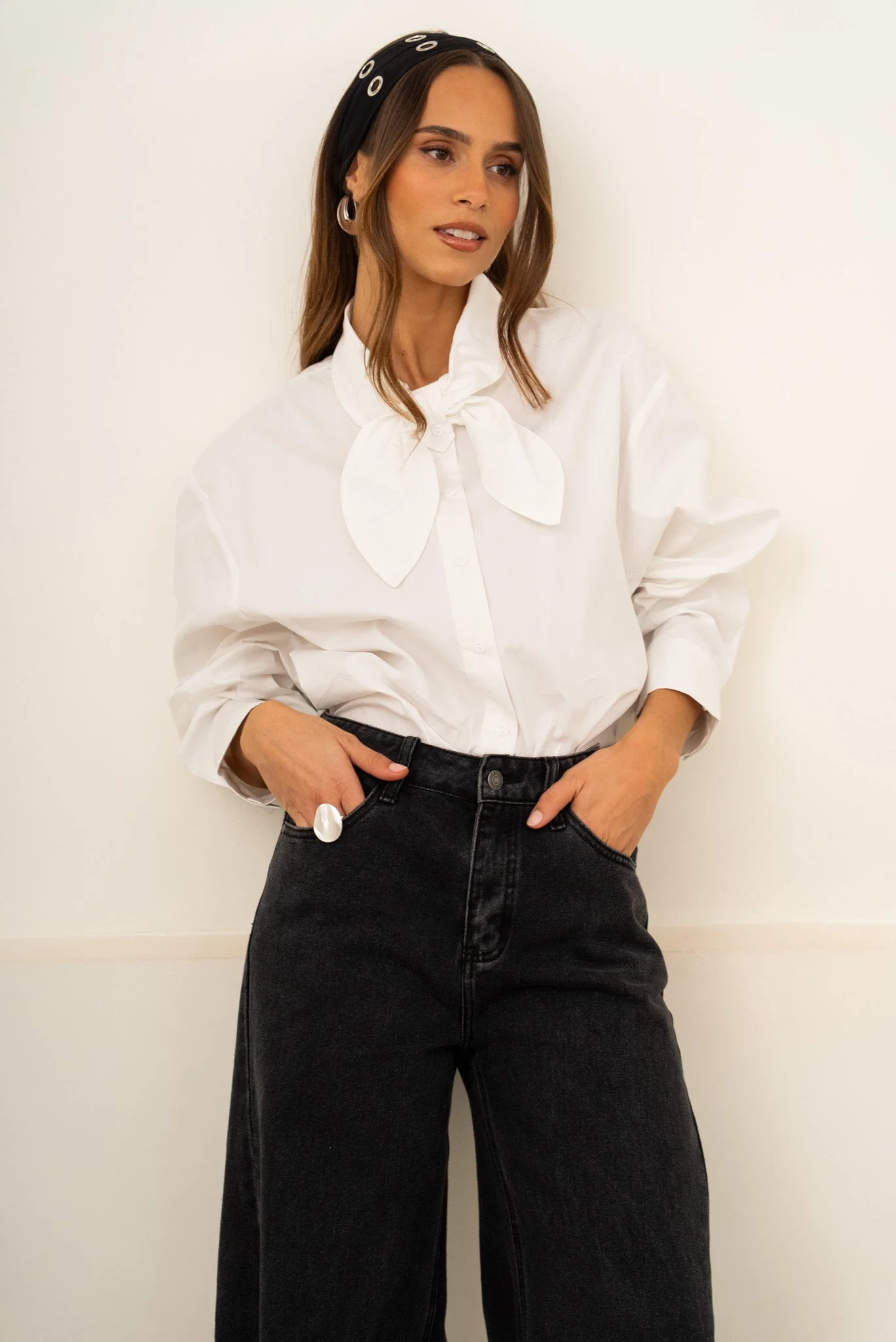 Chemise manches longues Simple boutonnage Col à noeud Mesures à plat en CM : Carrure / Epaule : SM 50 ML 52 Poitrine : SM 58 ML 60 Longueur depuis épaule : SM 73 ML 76 La mannequin mesure 173cm et porte une taille SM.