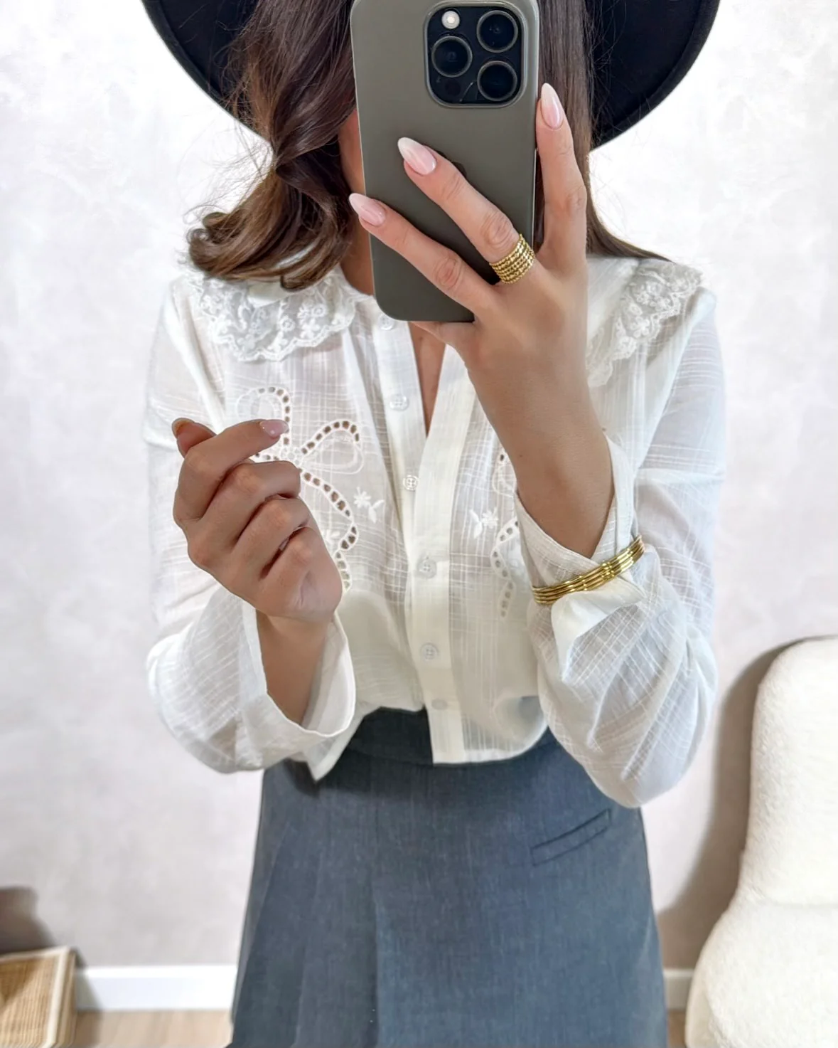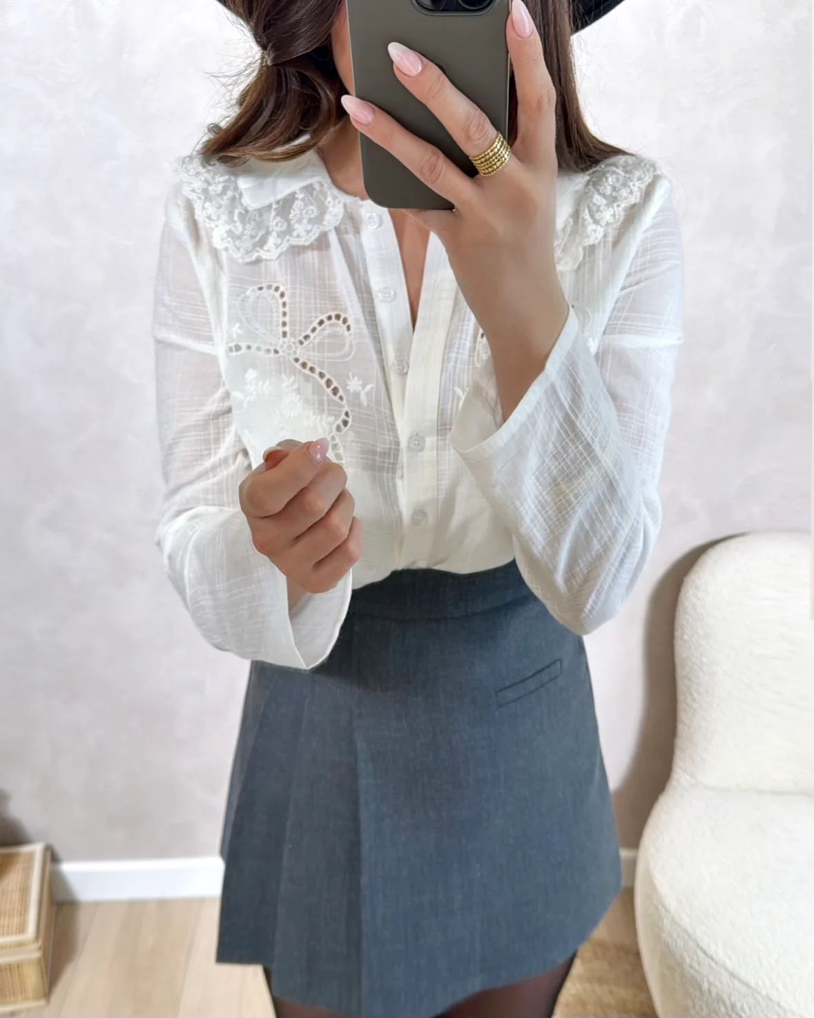 Chemise Alésia • Manches longues / Modèle court • Motifs fleurs et nœuds ajourés • Pauline mesure 1m65 et porte une taille S • S : Longueur 41cm – Largeur 50cm• M : Longueur 42.5cm – Largeur 52cm• L : Longueur 44cm – Largeur 54cm • Composition : 100% Coton • Mode d’expédition : Colissimo […]