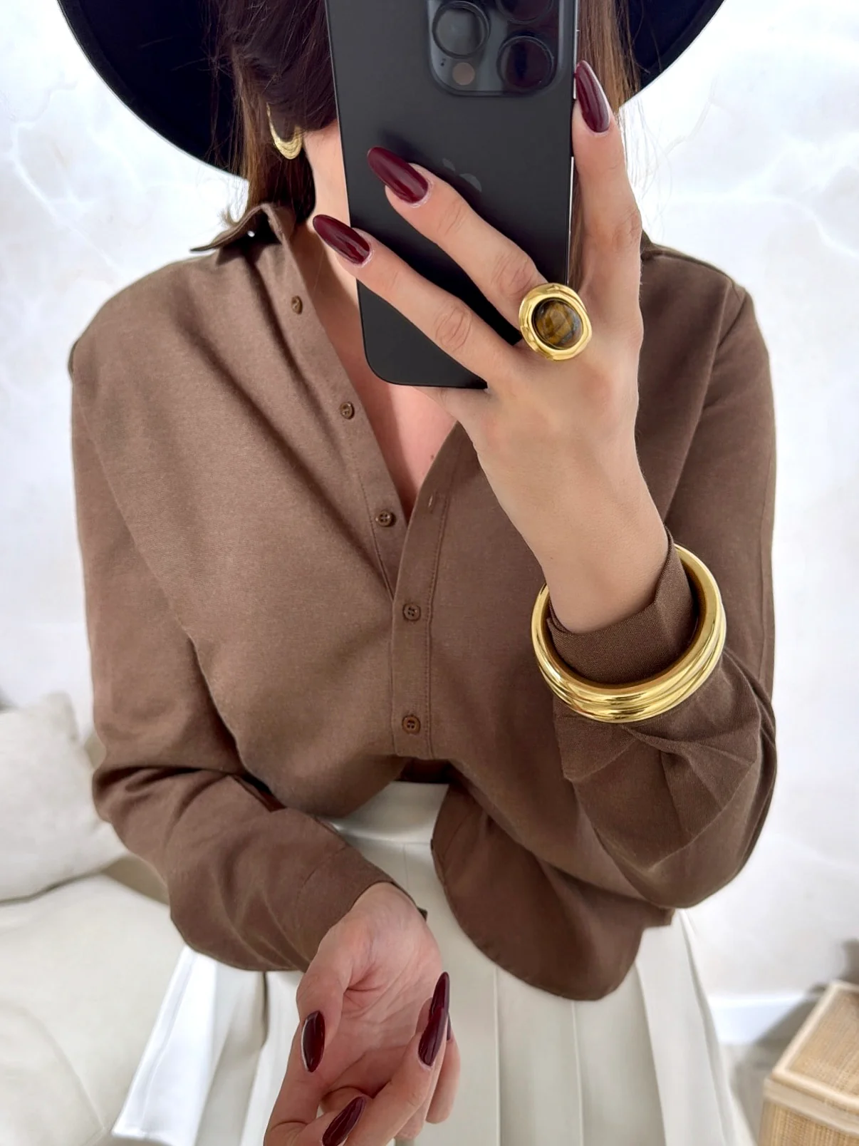 Chemise Amande • Fermeture avec boutons • Bouton au niveau des manches • Pauline mesure 1m65 et porte une taille S • S : Largeur 49cm – Longueur 60cm• M : Largeur 51cm – Longueur 63cm• L : Largeur 53cm – Longueur 66cm • Composition : 50% Coton, 50% Polyester • Mode d’expédition : Colissimo […]