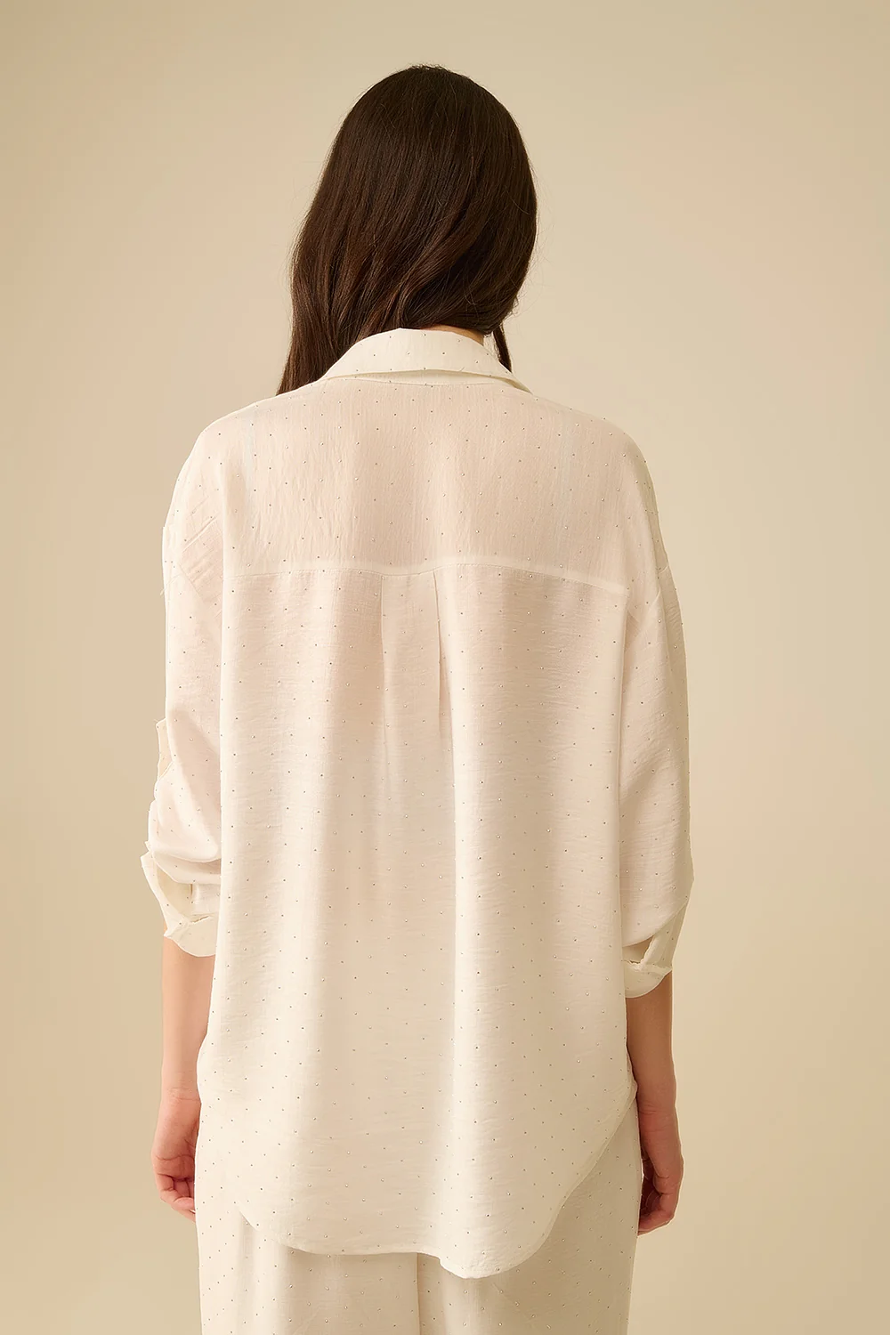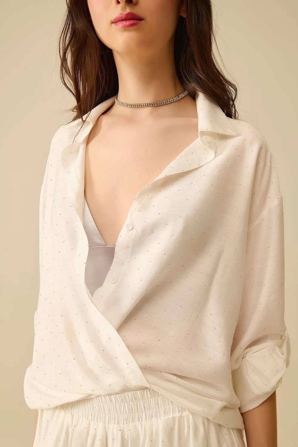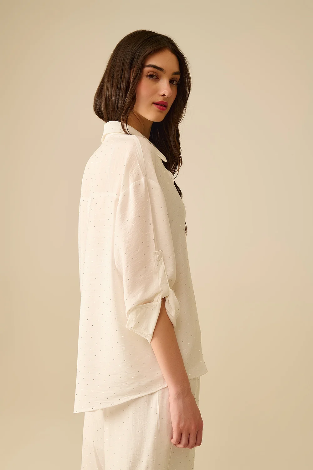 Chemise blanche légère à détails perlés – Raffinement subtil et douceur estivale