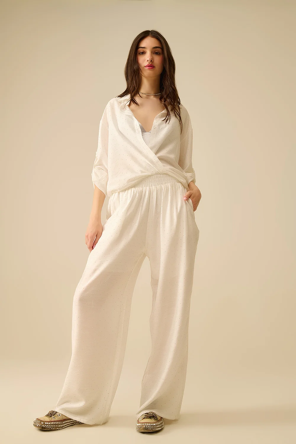 Offrez-vous une pièce à la fois élégante et facile à vivre avec cette chemise blanche en tissu léger, pensée pour sublimer vos journées ensoleillées. Son toucher soyeux et ses finitions perlées délicates en font un indispensable chic et confortable.