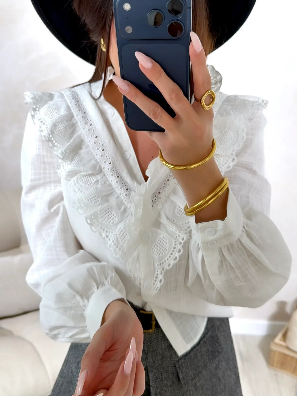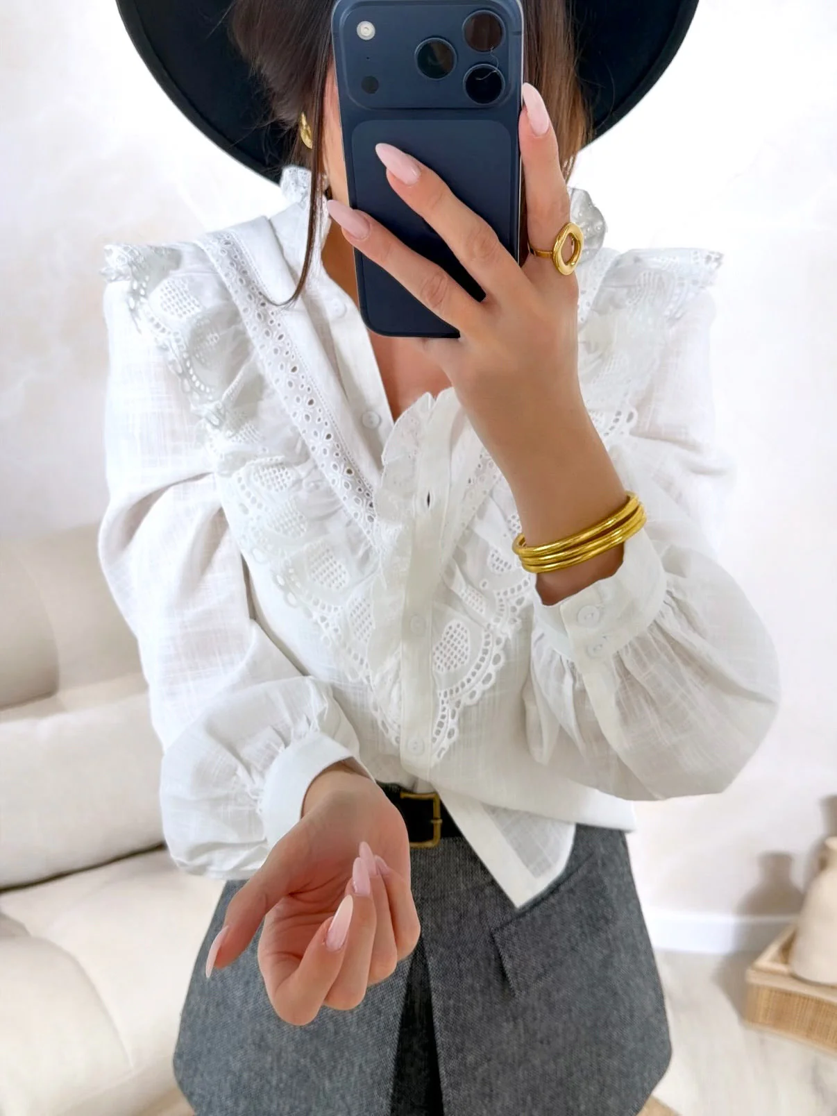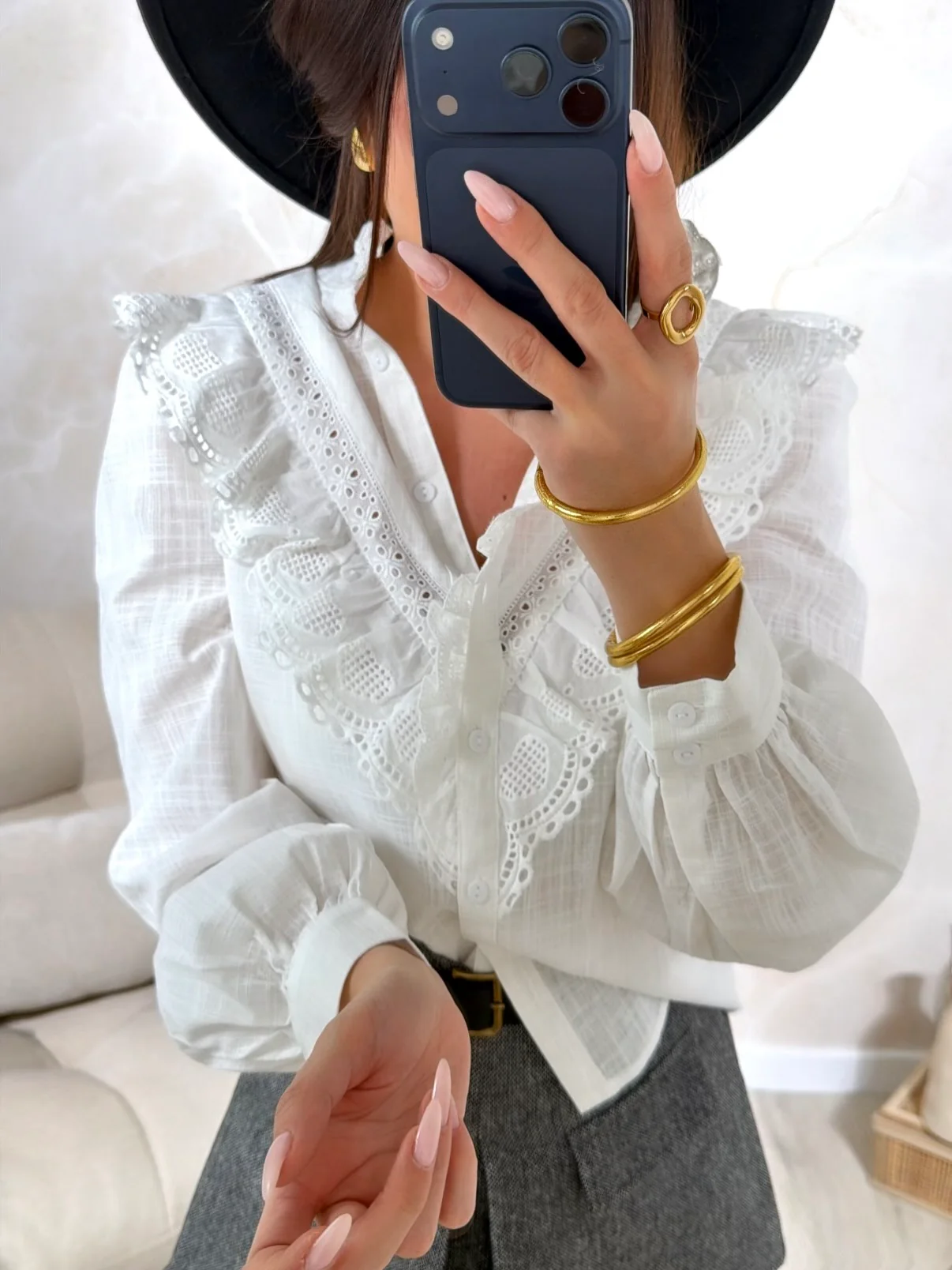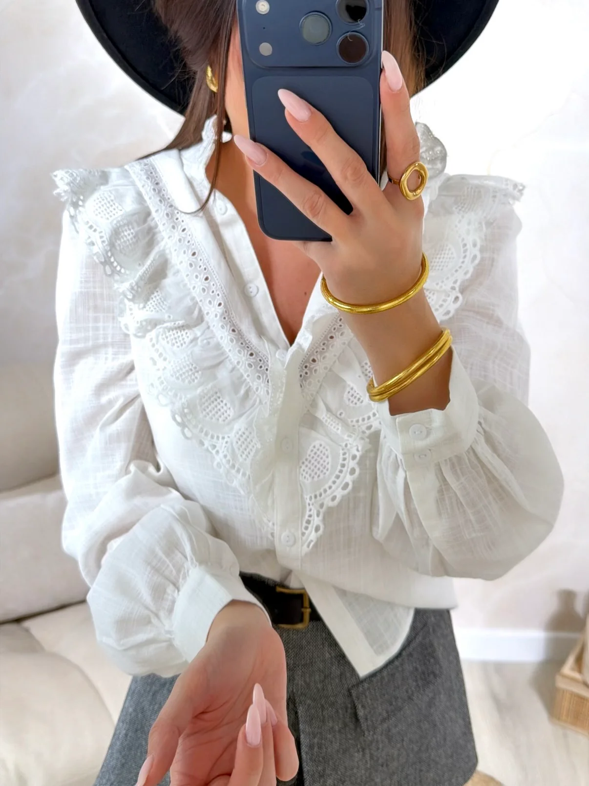 Chemise Caresse • Fermeture avec boutons • Boutons au niveau des manches • Pauline mesure 1m65 et porte une taille S-M • Composition : 100% Coton • Mode d’expédition : Colissimo avec ou sans signature. • Livraison offerte à partir de 69€ d’achat