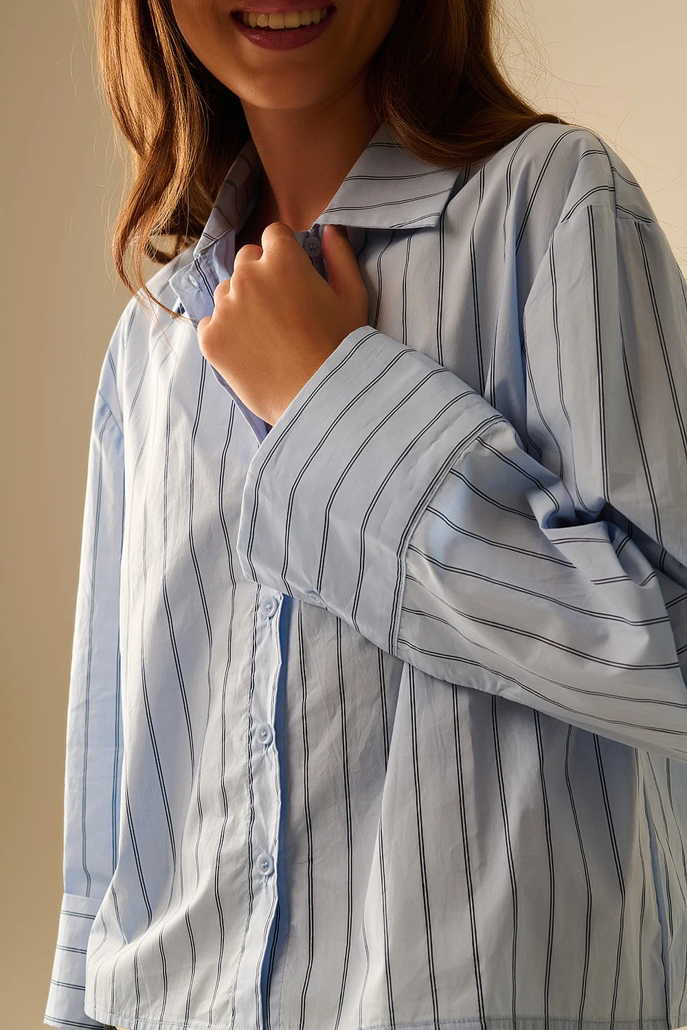 longueur: longueur pantacourt. SousCategorie: Chemisier. Manches: Manches longues. Imprimer: motif à rayures. Coupent: Ajustement standard. Style: Style de tous les jours. Tissu: Popeline. runs true to size. S. 100% coton