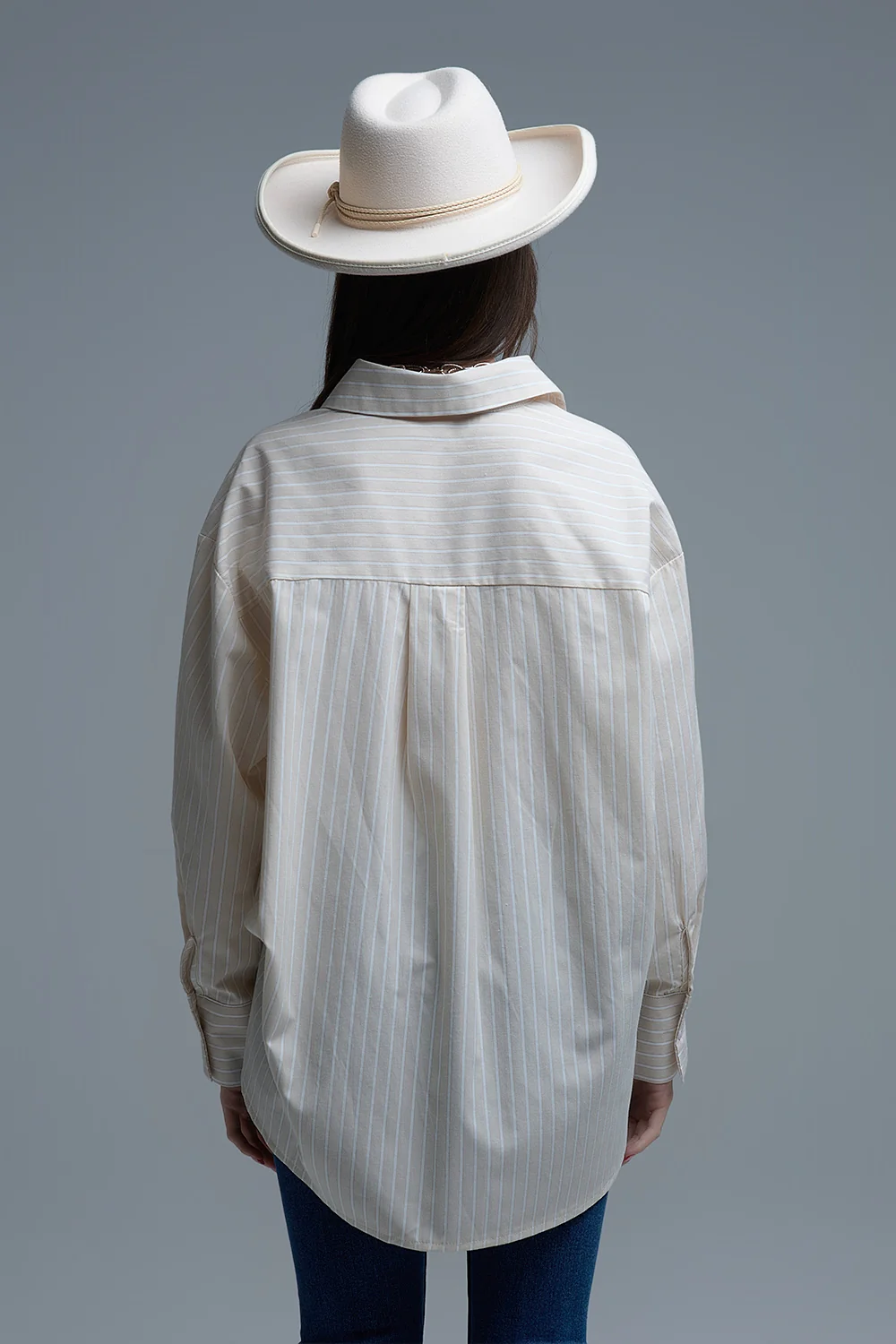 Chemise décontractée beige à rayures et coutures en forme de cœur