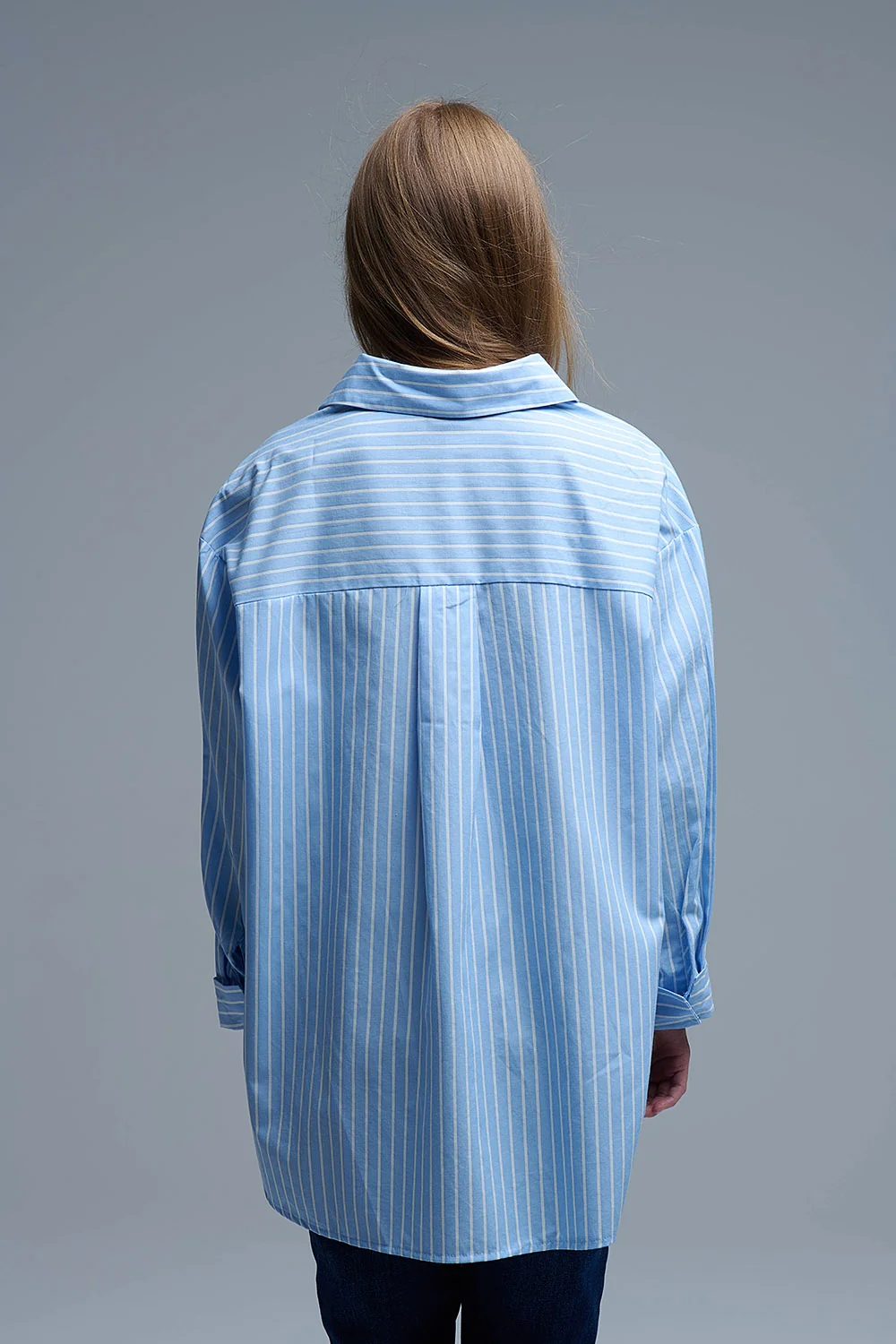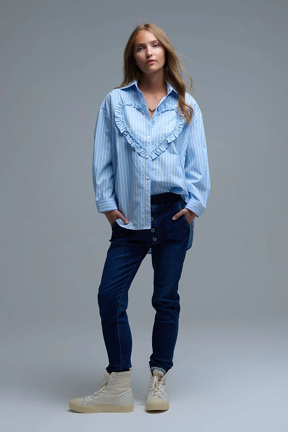 Chemise décontractée bleue à rayures et coutures en forme de cœur