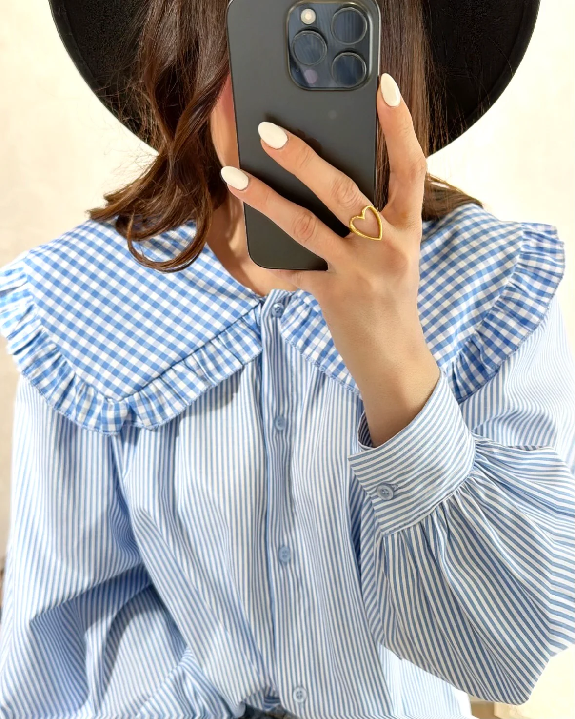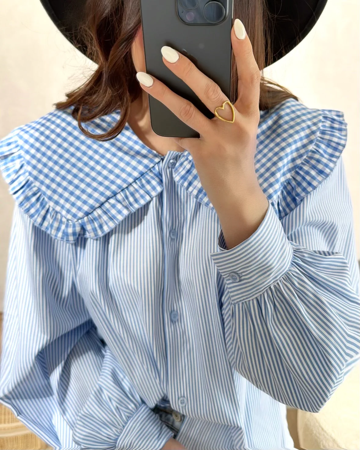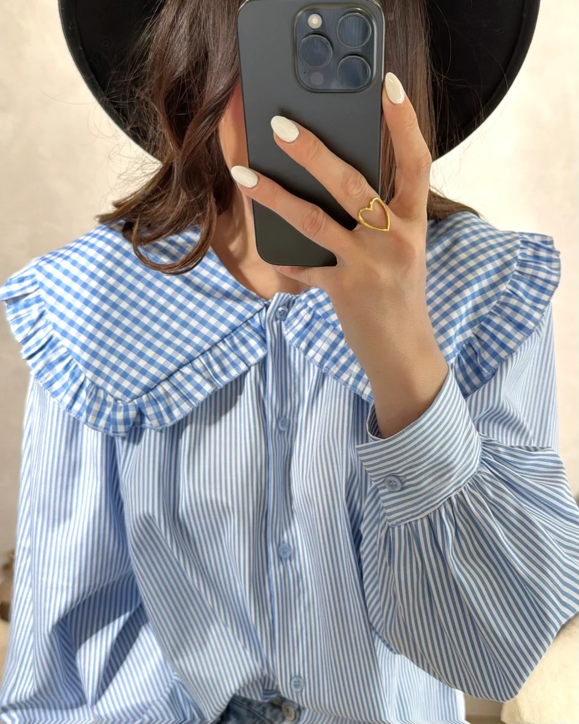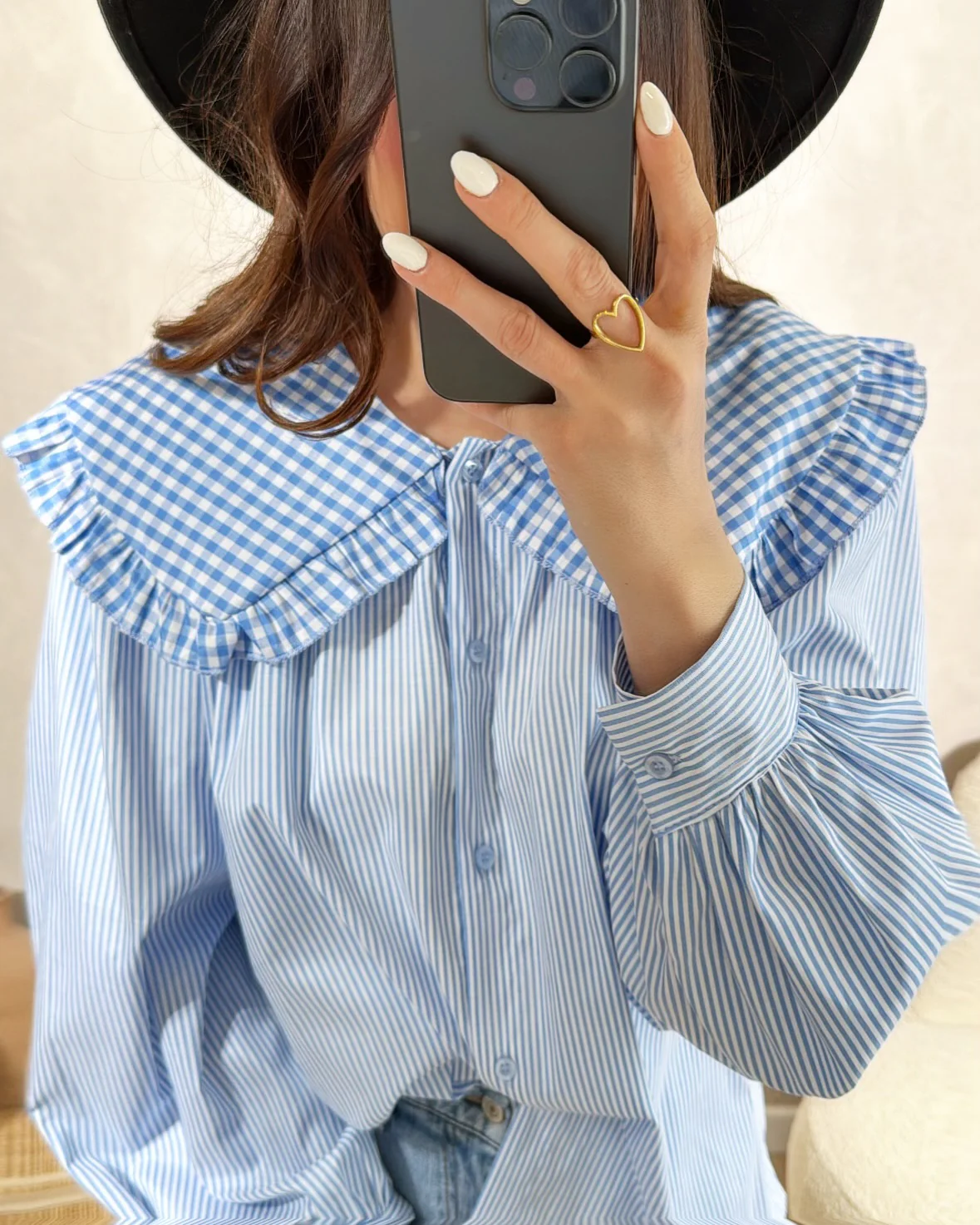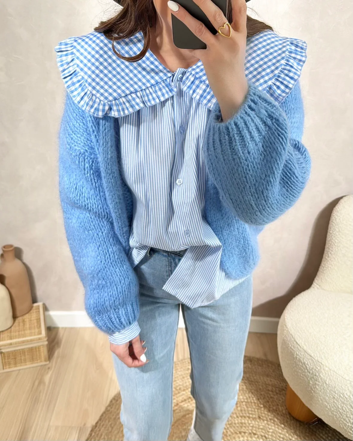 Chemise Donna • Fermeture avec boutons • Col claudine motif vichy • Manches longues / fermeture avec boutons • Le modèle mesure 1m65 et porte une taille unique • TU : Longueur 62cm – Largeur 61cm • Composition : 100% Coton • Mode d’expédition : La poste, colissimo avec ou sans signature • Livraison offerte […]