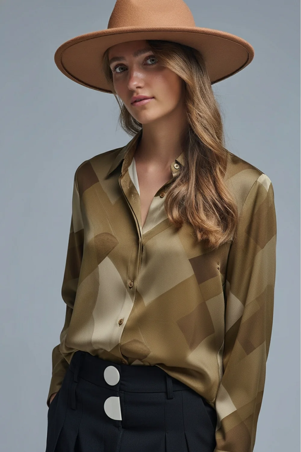 Chemise en satin vert à imprimé géométrique