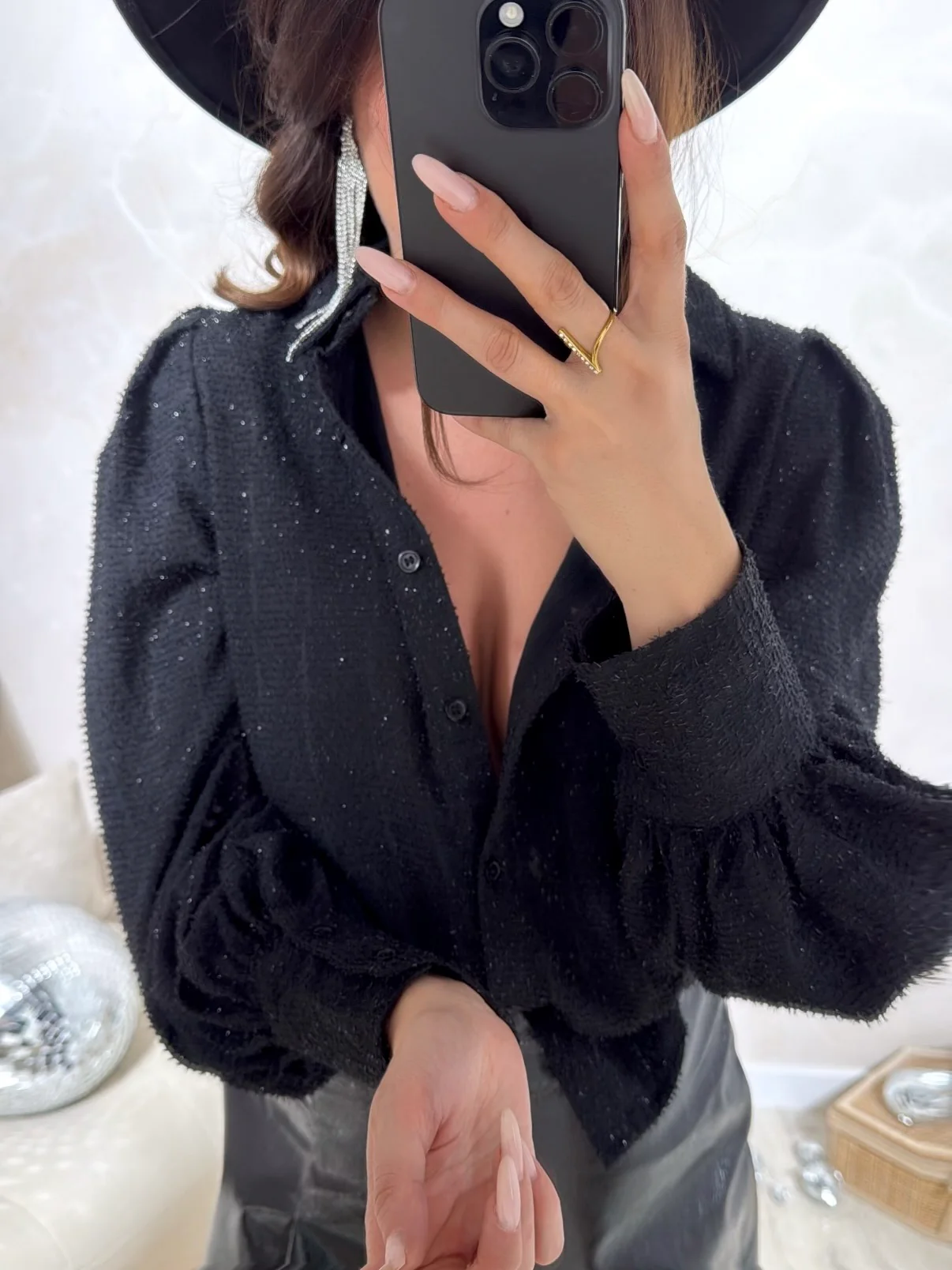 Chemise Minuit • Fermeture avec boutons • Tissus brillant • Pauline mesure 1m65 et porte une taille S • Composition : 100% Polyester • Mode d’expédition : Colissimo avec ou sans signature. • Livraison offerte à partir de 69€ d’achat