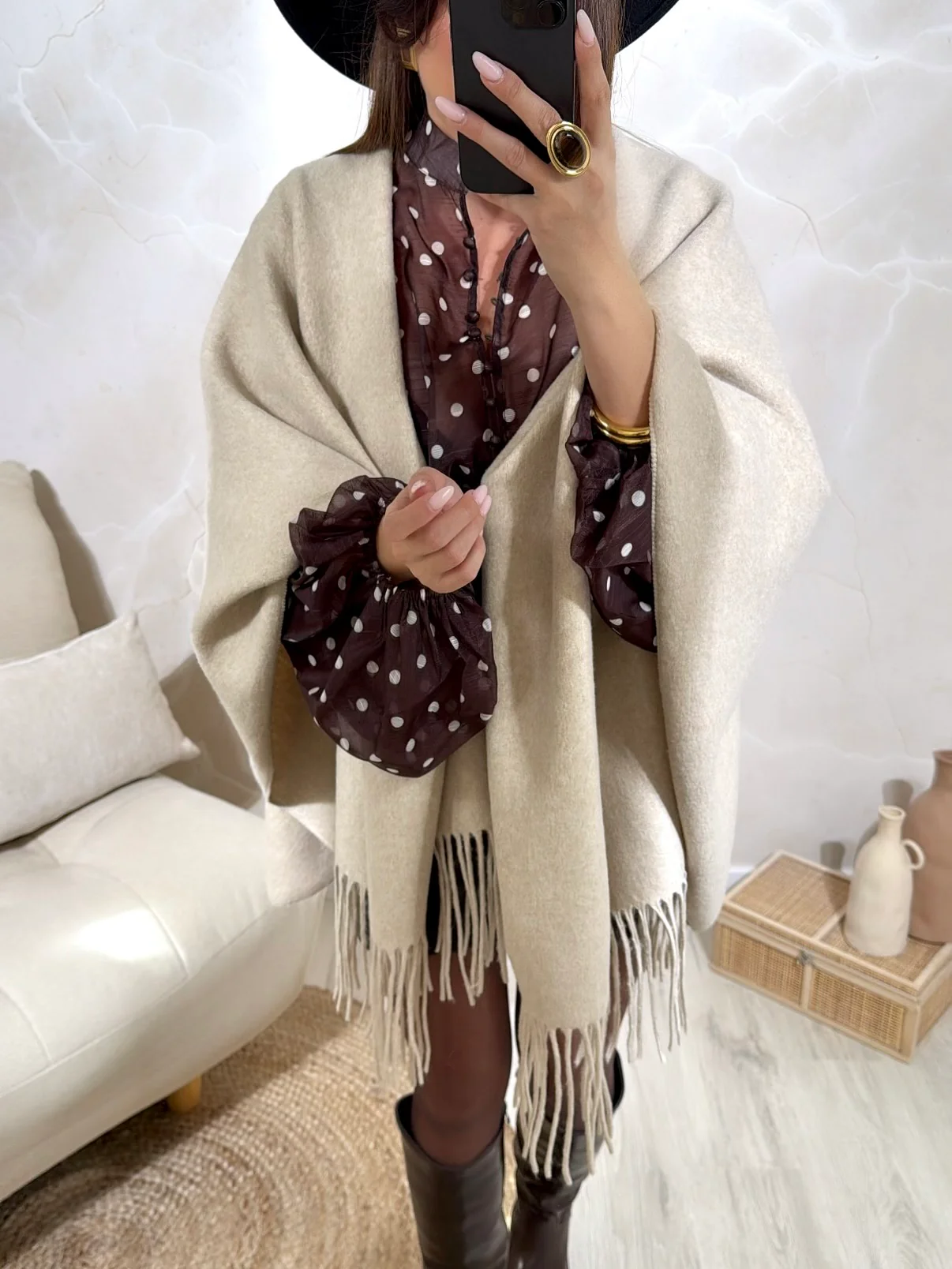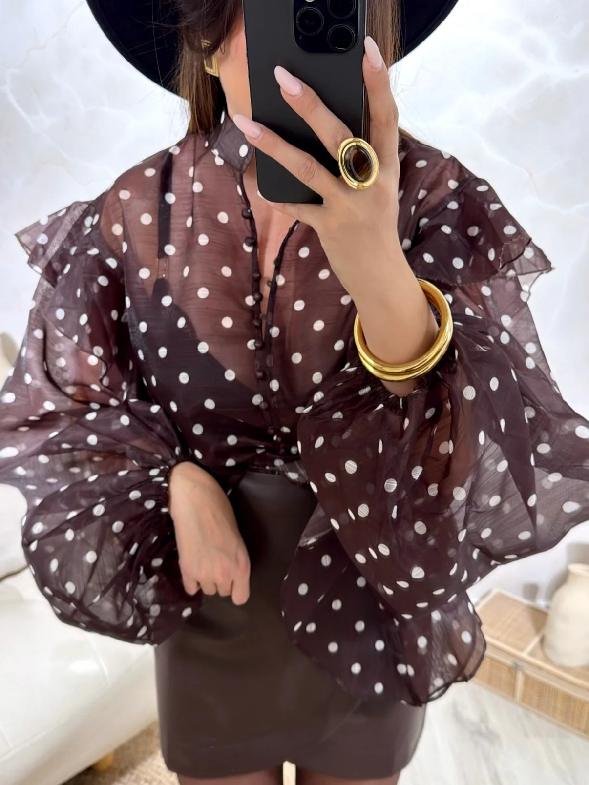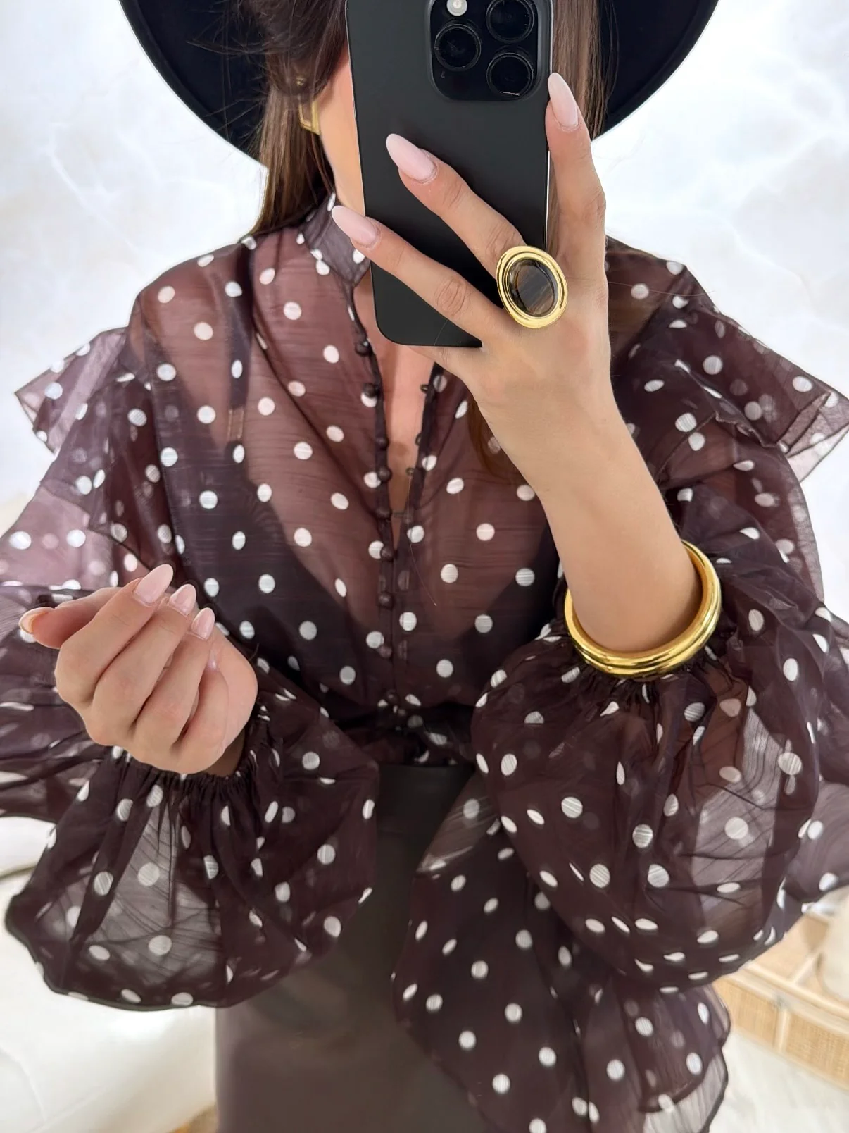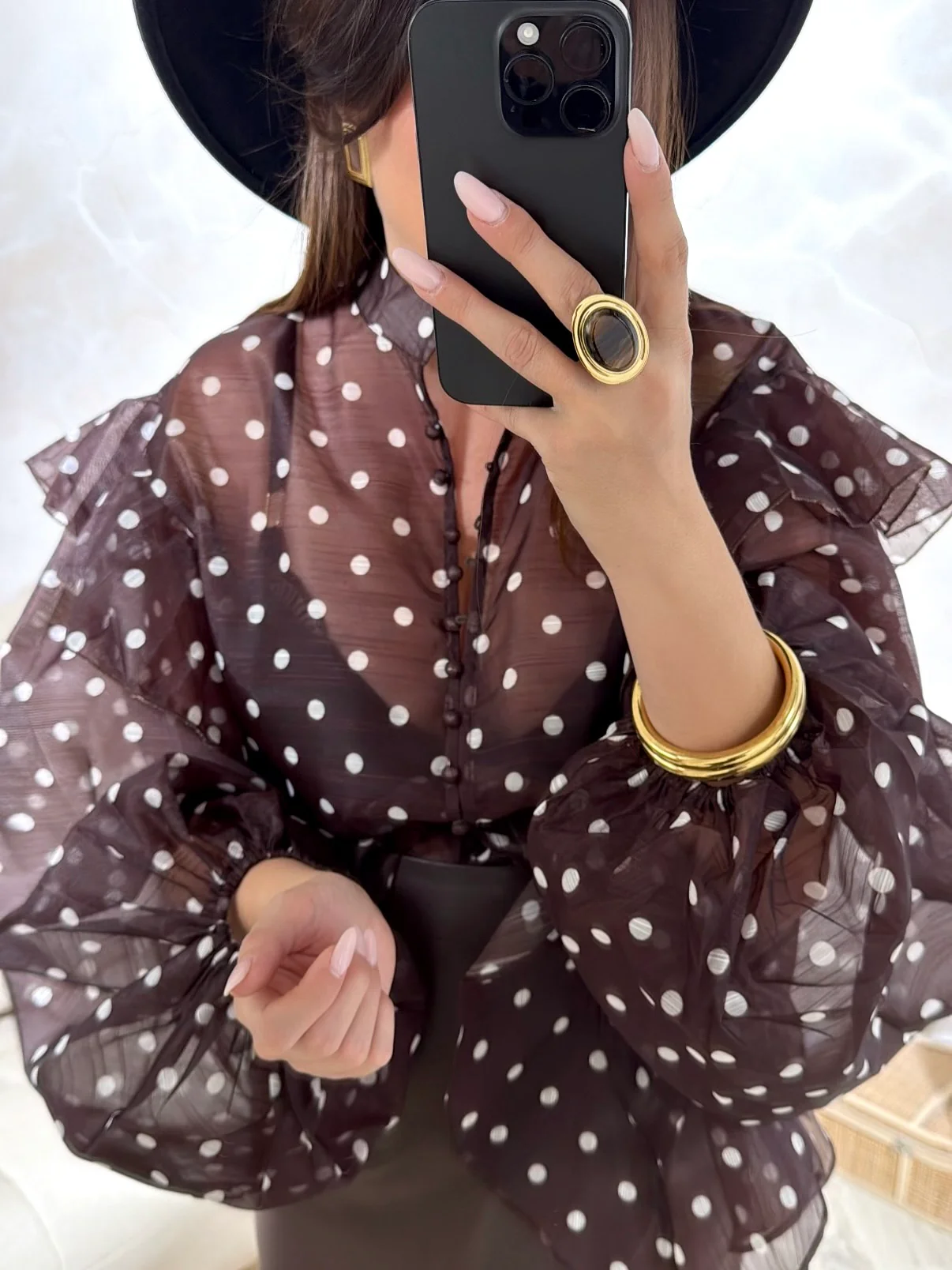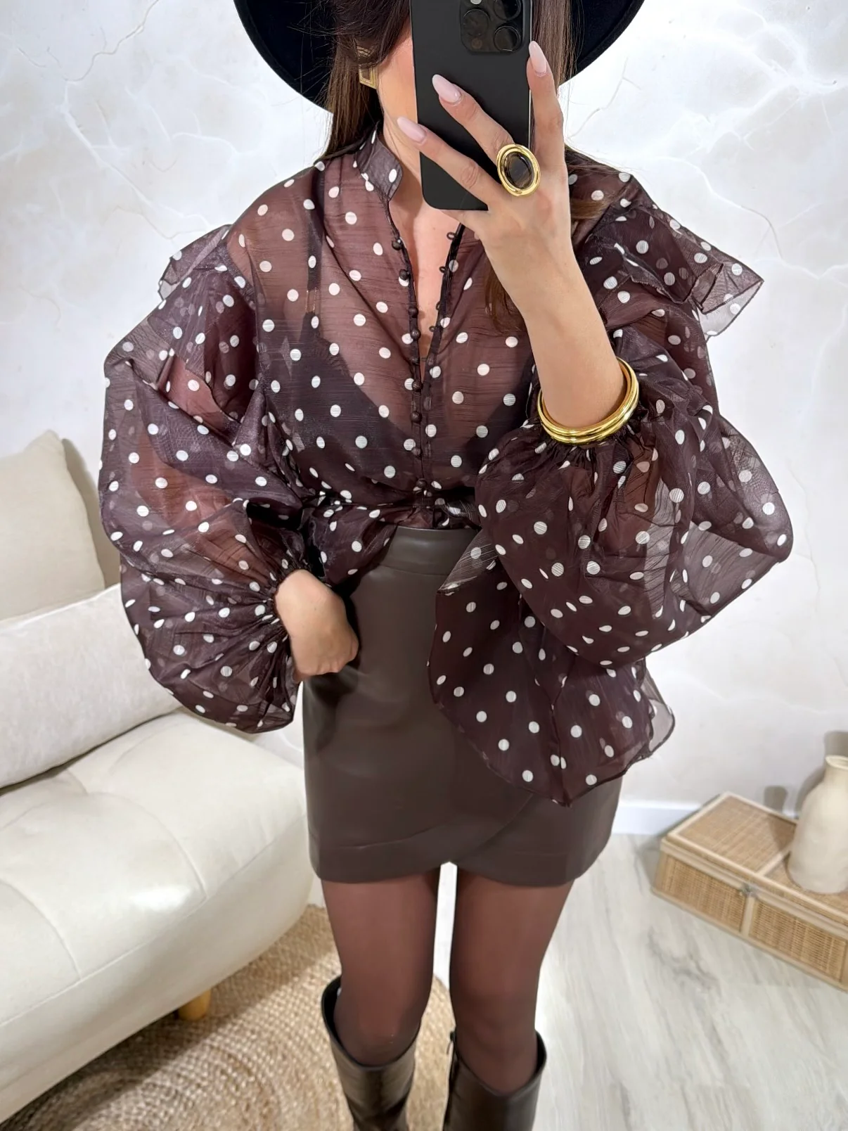 Chemise Pépite • Fermeture avec boutons / Écharpe fournie • Motif à pois • Lien a nouer au niveau du col • Pauline mesure 1m65 et porte une taille Unique • Composition : 100% Polyester • Mode d’expédition : Colissimo avec ou sans signature. • Livraison offerte à partir de 69€ d’achat