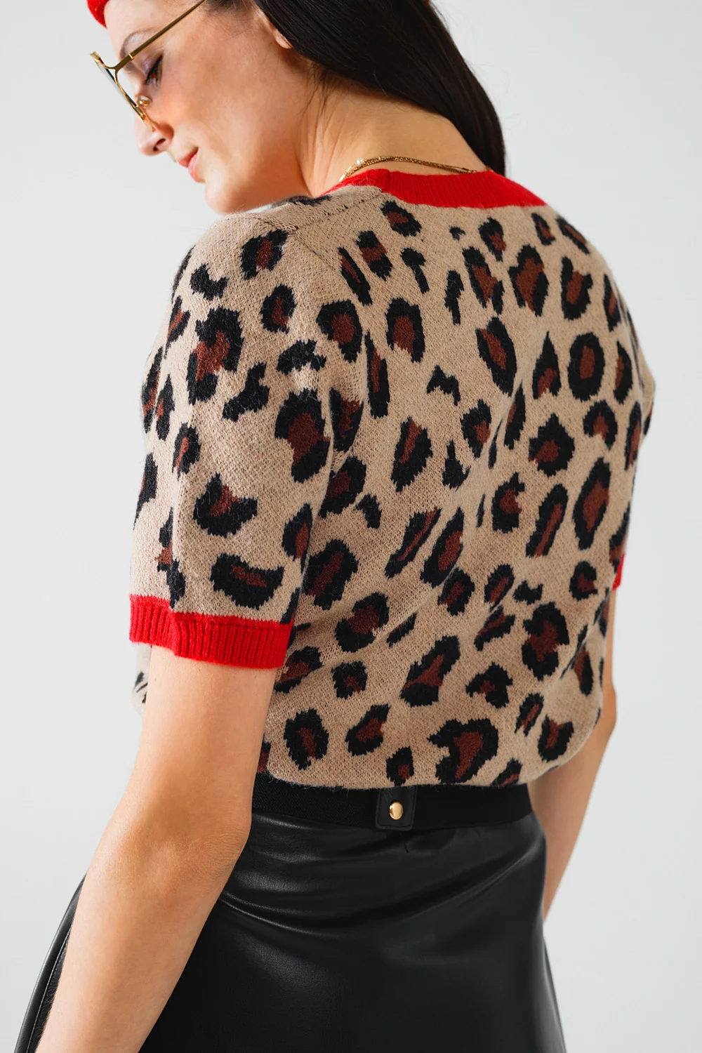 chemise pull confortable à imprimé panthère avec bords rouges