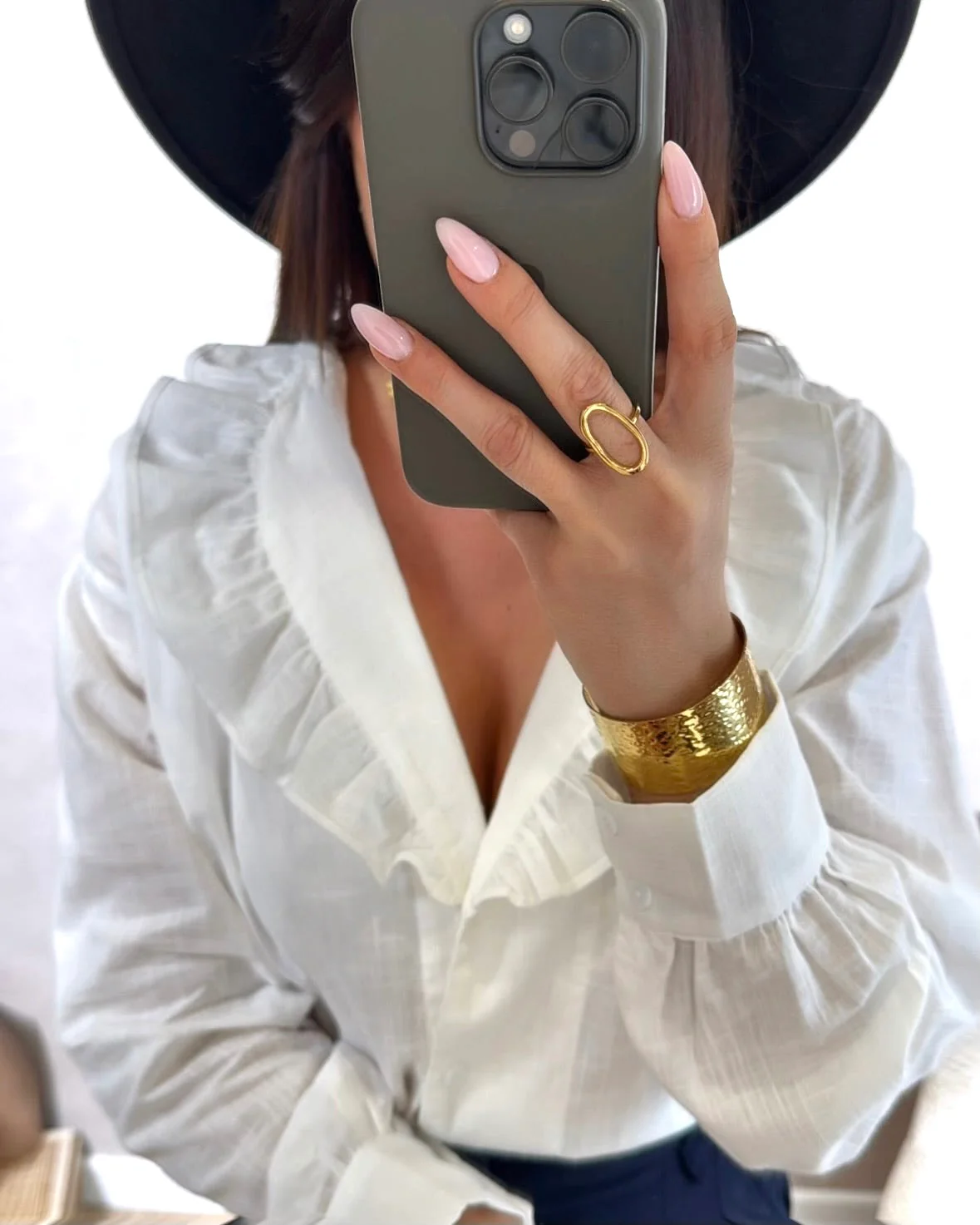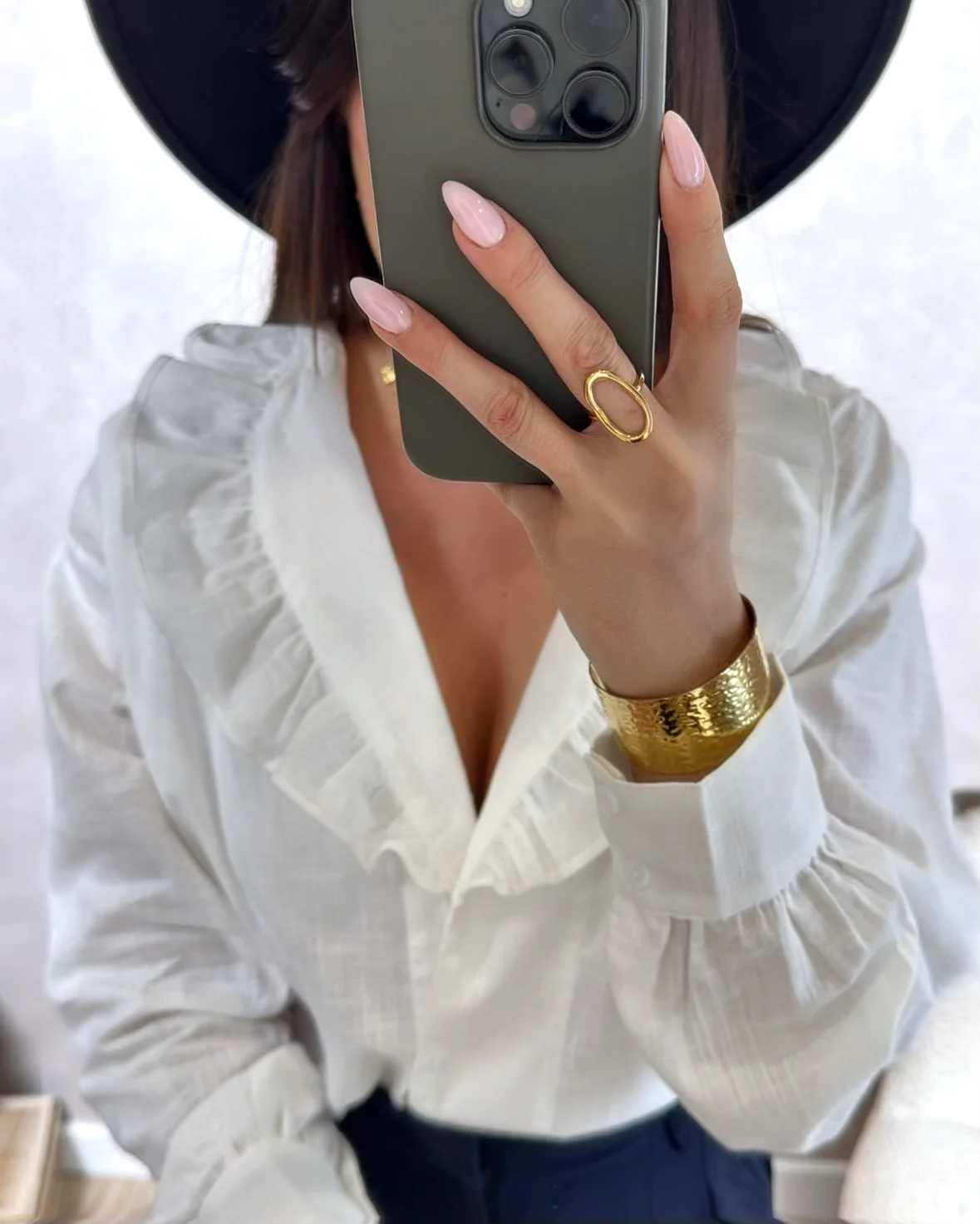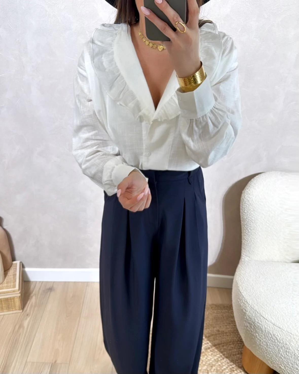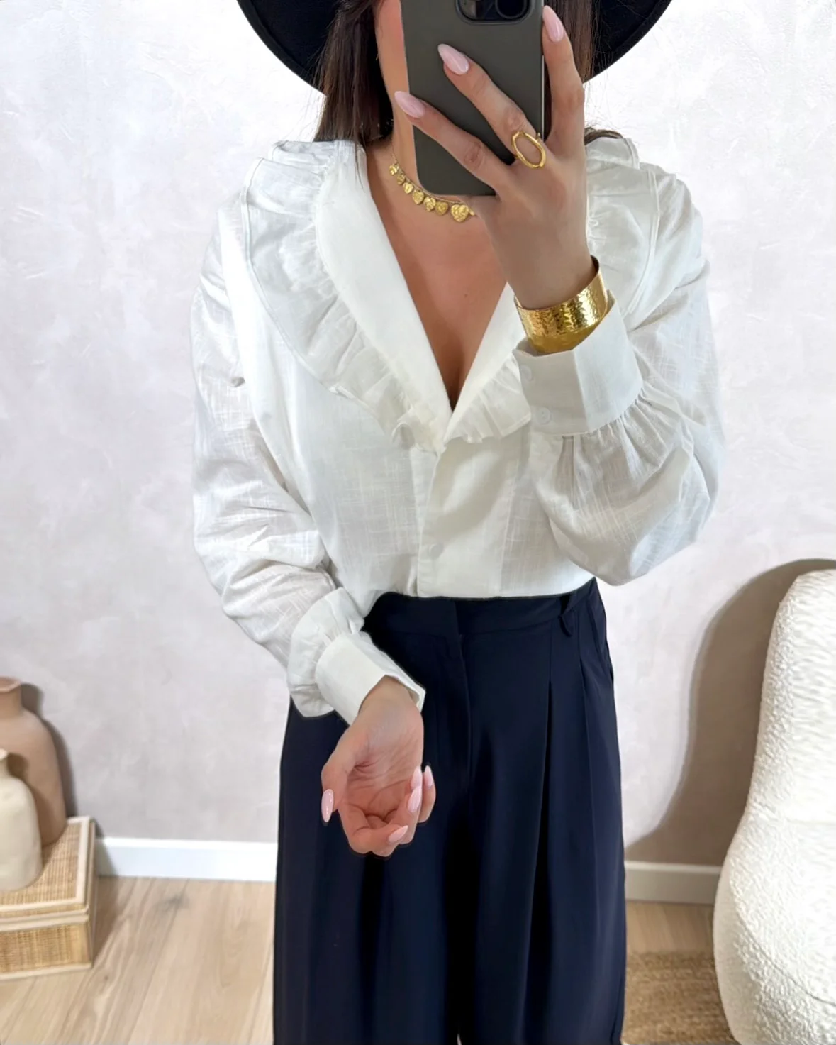 Chemise Solene • Fermeture avec boutons • Volants sur le haut • Boutons au niveau des poignets • Pauline mesure 1m65 et porte une taille S • S : Largeur 58cm – Longueur 57cm• M : Largeur 60cm – Longueur 58cm• L : Largeur 63cm – Longueur 59cm • Composition : 100% Coton • Mode […]