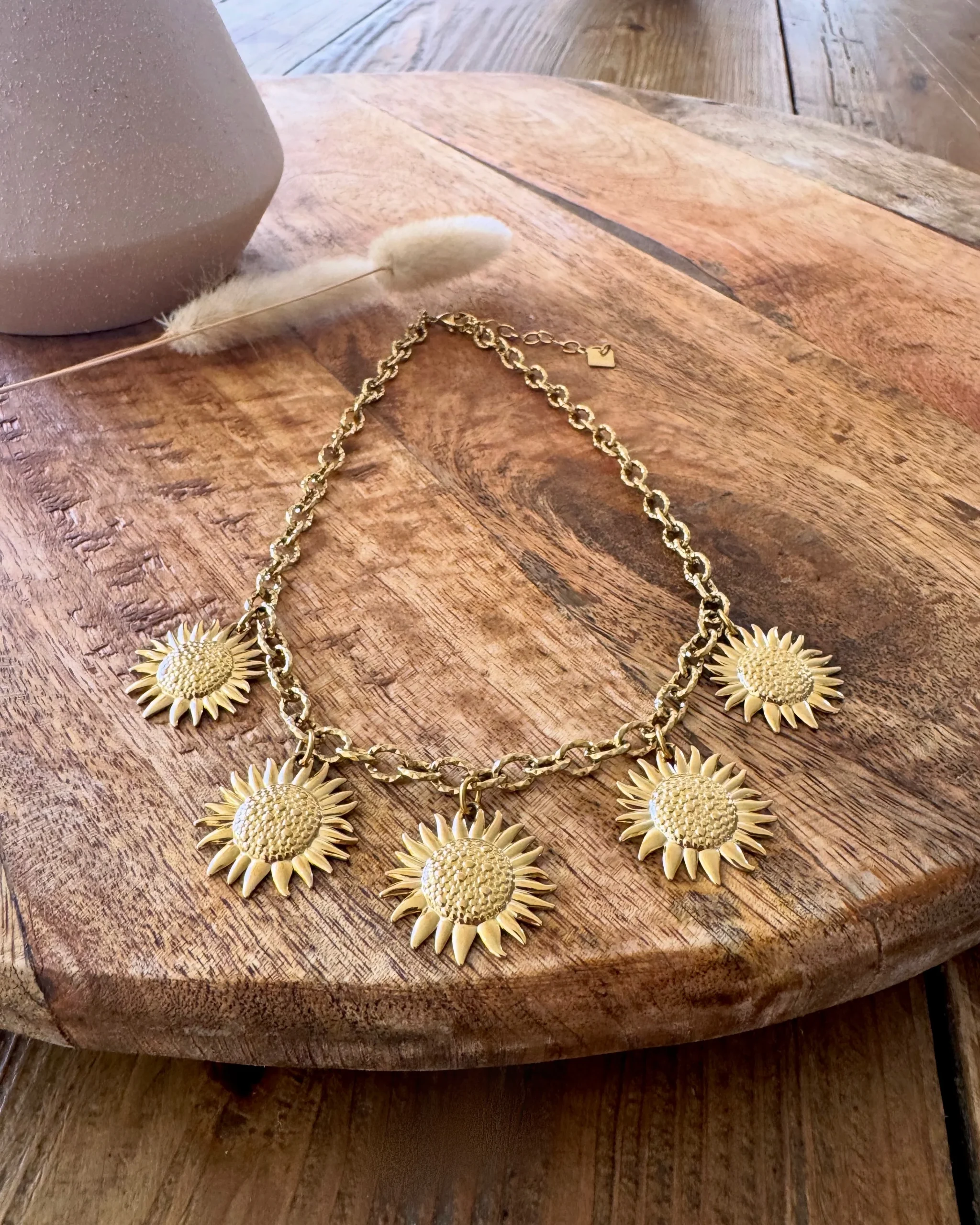 Collier Djerba • Dorées • Charms : Tournesols • Acier inoxydable • Mode d’expédition : Colissimo avec ou sans signature. • Livraison offerte à partir de 69€ d’achat