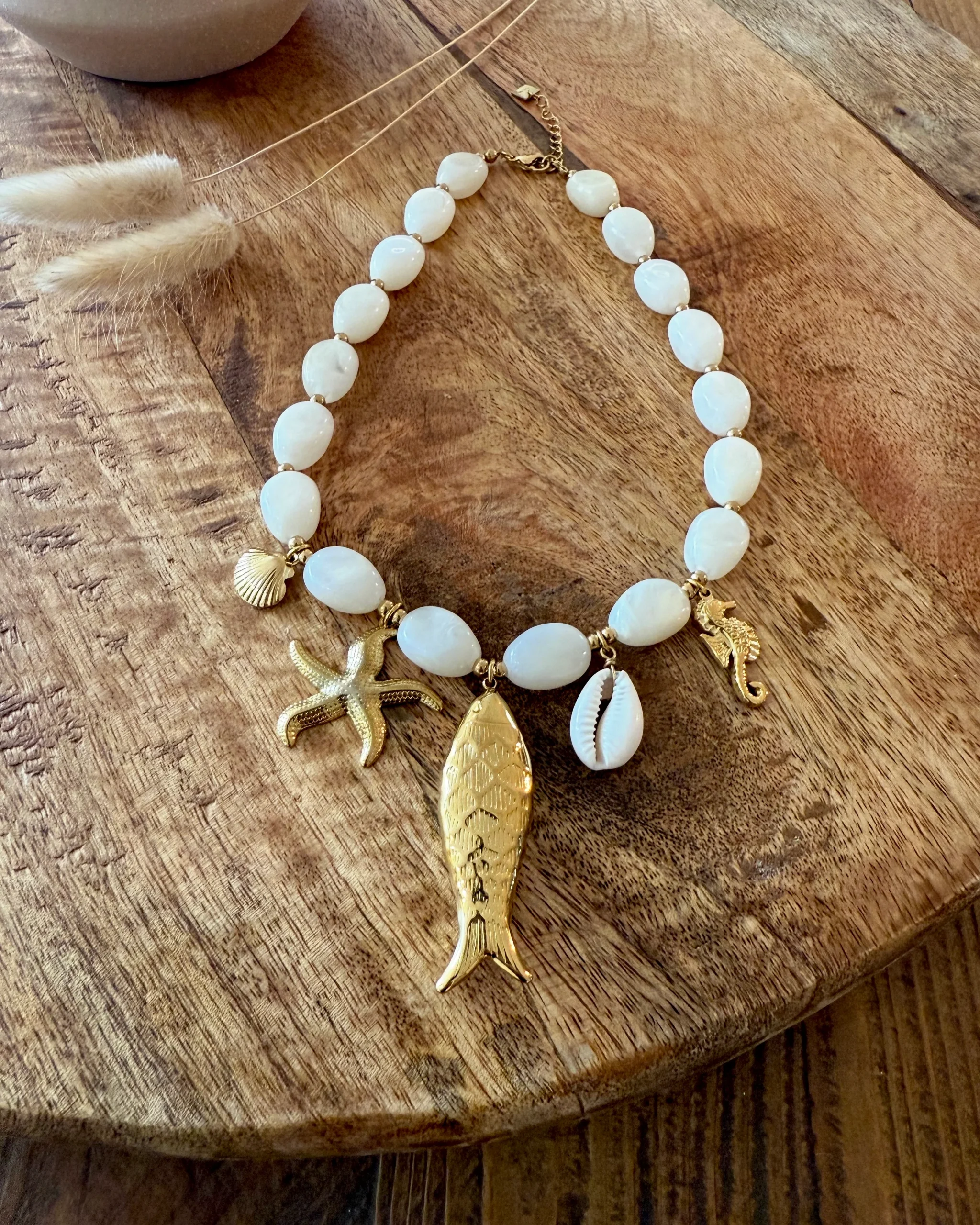 Collier Fisher • Doré • Charms : Coquillage, étoile de mer, poisson, coquillage, hippocampe • Acier inoxydable • Mode d’expédition : Colissimo avec ou sans signature. • Livraison offerte à partir de 69€ d’achat