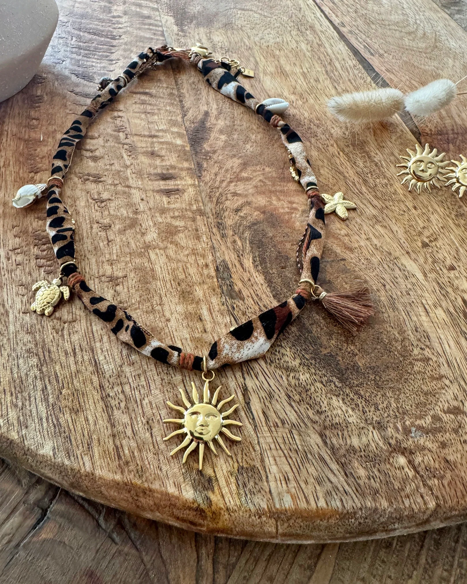 Collier Malte • Dorées • Tissus léopard • Mode d’expédition : Colissimo avec ou sans signature.• Livraison offerte à partir de 69€ d’achat