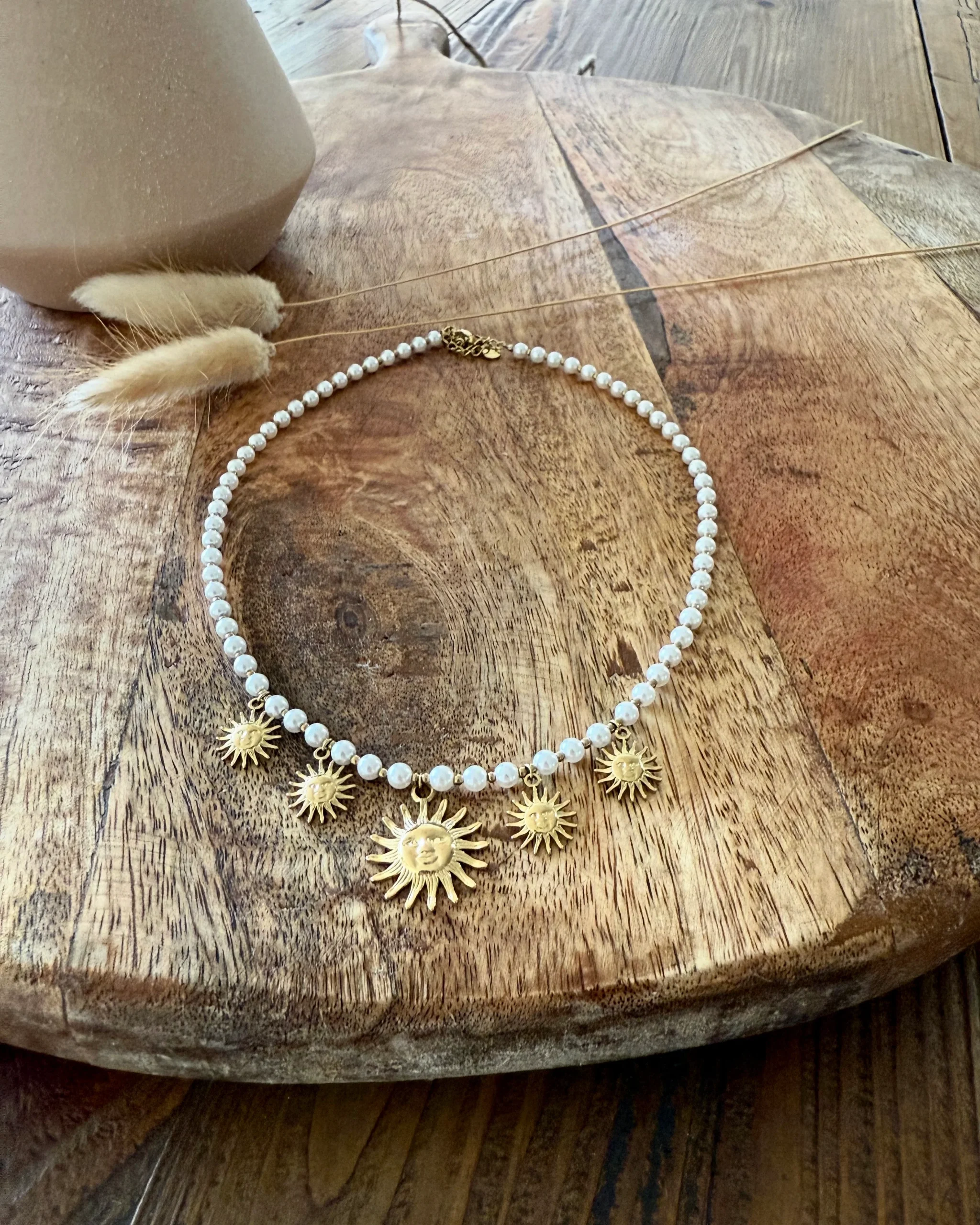 Collier Rayon • Perles • Doré • Soleil • Acier inoxydable • Mode d’expédition : Colissimo avec ou sans signature. • Livraison offerte à partir de 69€ d’achat