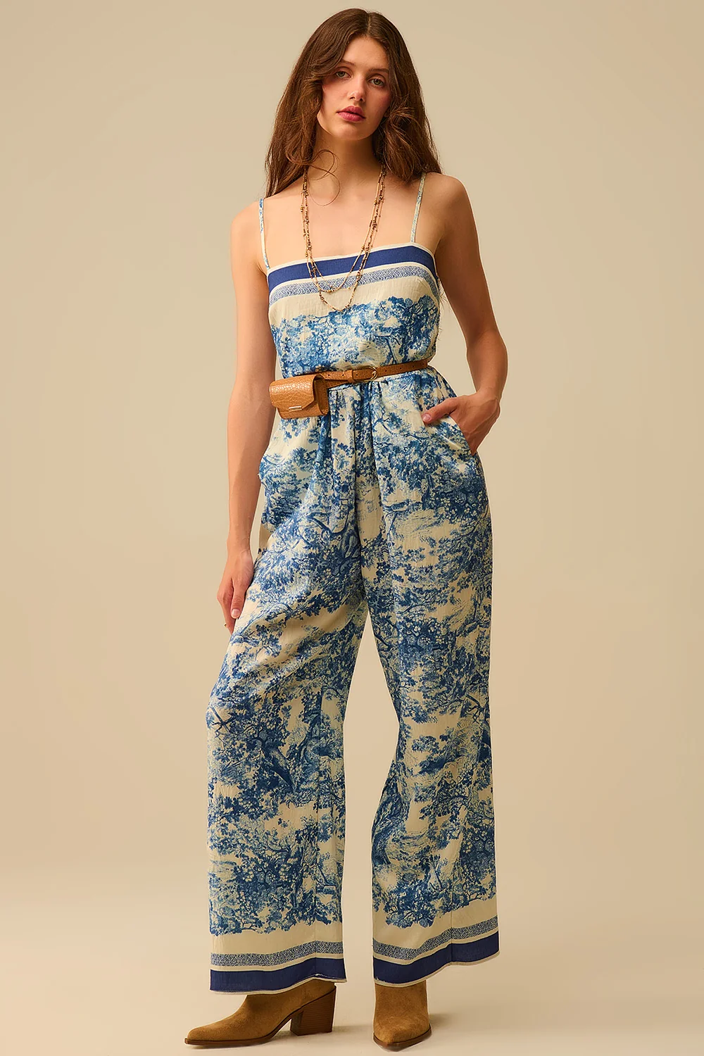 Combinaison à fines bretelles imprimée Toile de Jouy