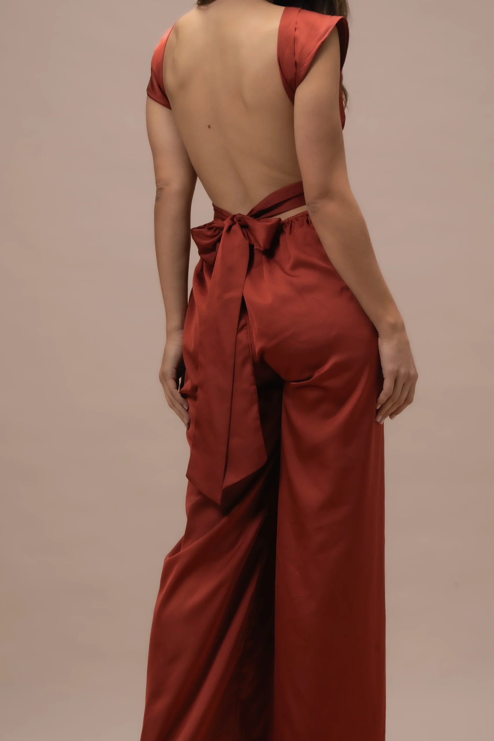 Incarnez l’élégance avec la Combinaison Confiance, une pièce maîtresse qui se distingue par sa capacité à se transformer grâce à ses liens modulables, offrant une infinité de styles. Réalisée dans un tissu satiné d’un riche terracotta foncé, elle marie avec brio le luxe et la polyvalence. Le pantalon fluide accentue son allure sophistiquée, tandis que […]