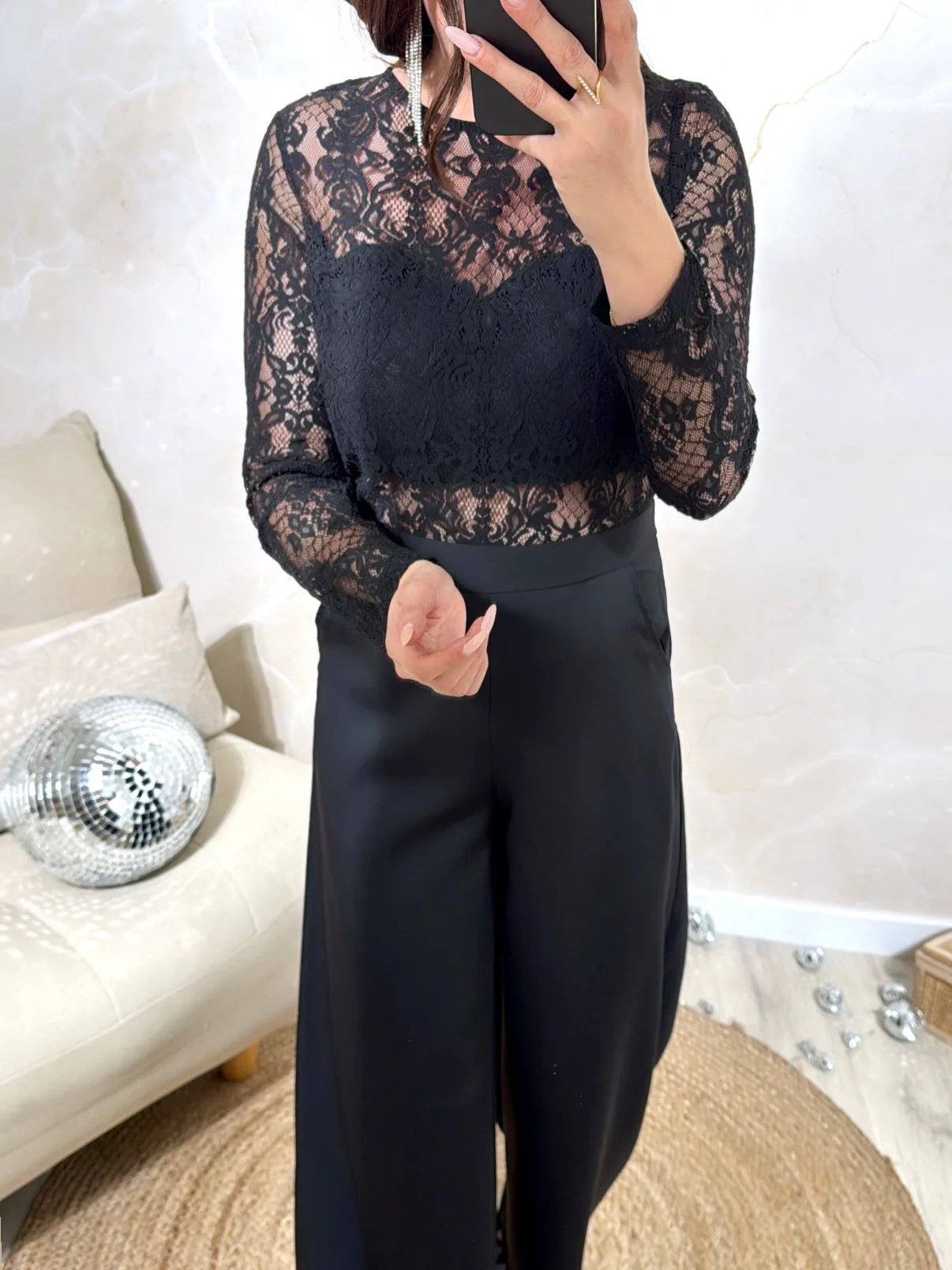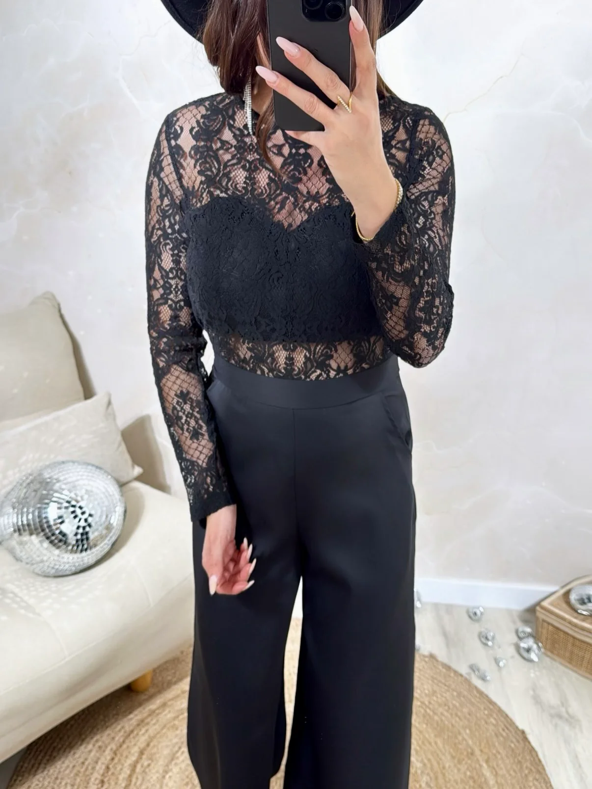 Combinaison Elegance • Fermeture par zip sur le coté • Dentelles • Manches longues • Pauline mesure 1m65 et porte une taille S • Composition : 100% Polyester • Mode d’expédition : Colissimo avec ou sans signature. • Livraison offerte à partir de 69€ d’achat