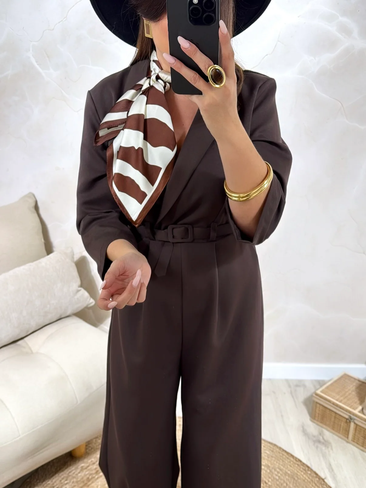 Combinaison Montmartre Chocolat • Style blazer • Légère et fluide • Manches 3/4 • Pauline mesure 1m65 et porte une taille unique • Composition : 95% Polyester, 5% Elasthanne • Mode d’expédition : Colissimo avec ou sans signature. • Livraison offerte à partir de 69€ d’achat
