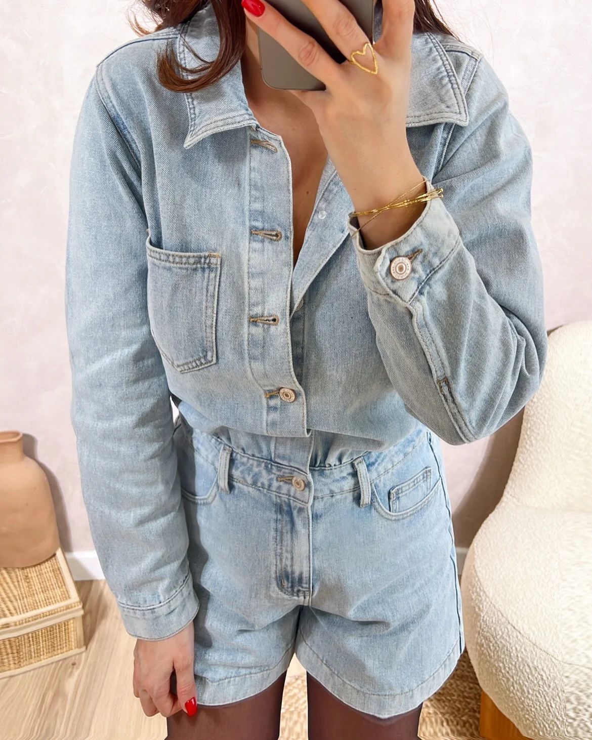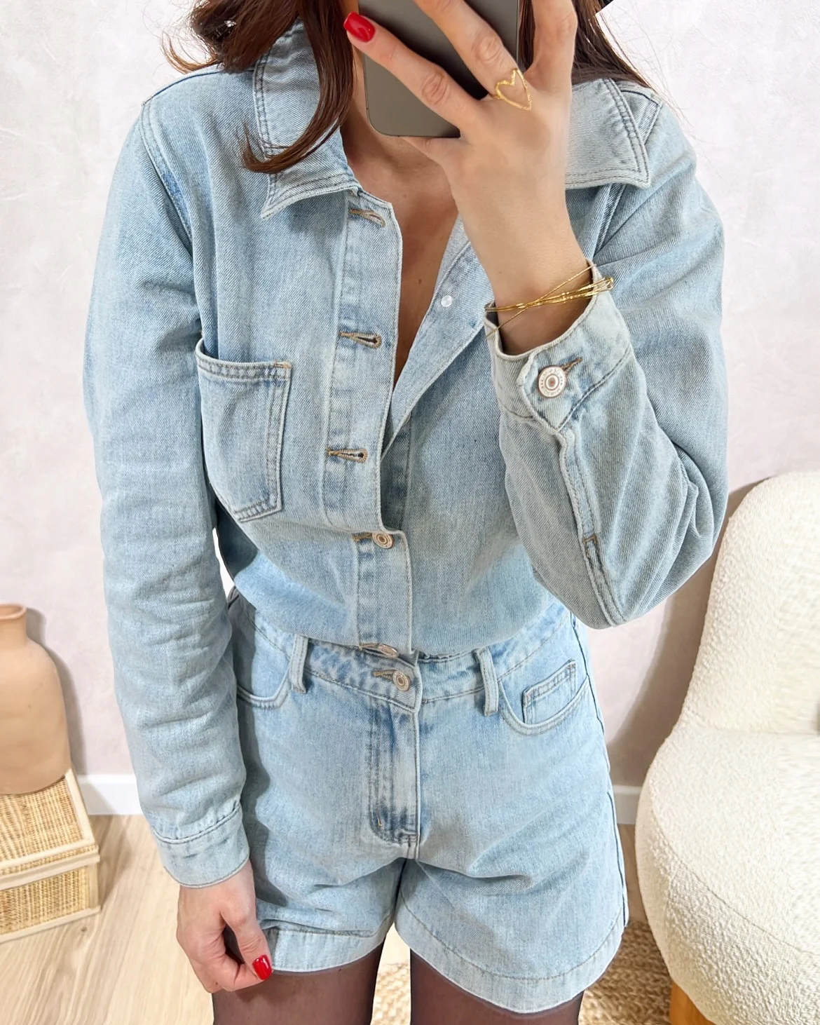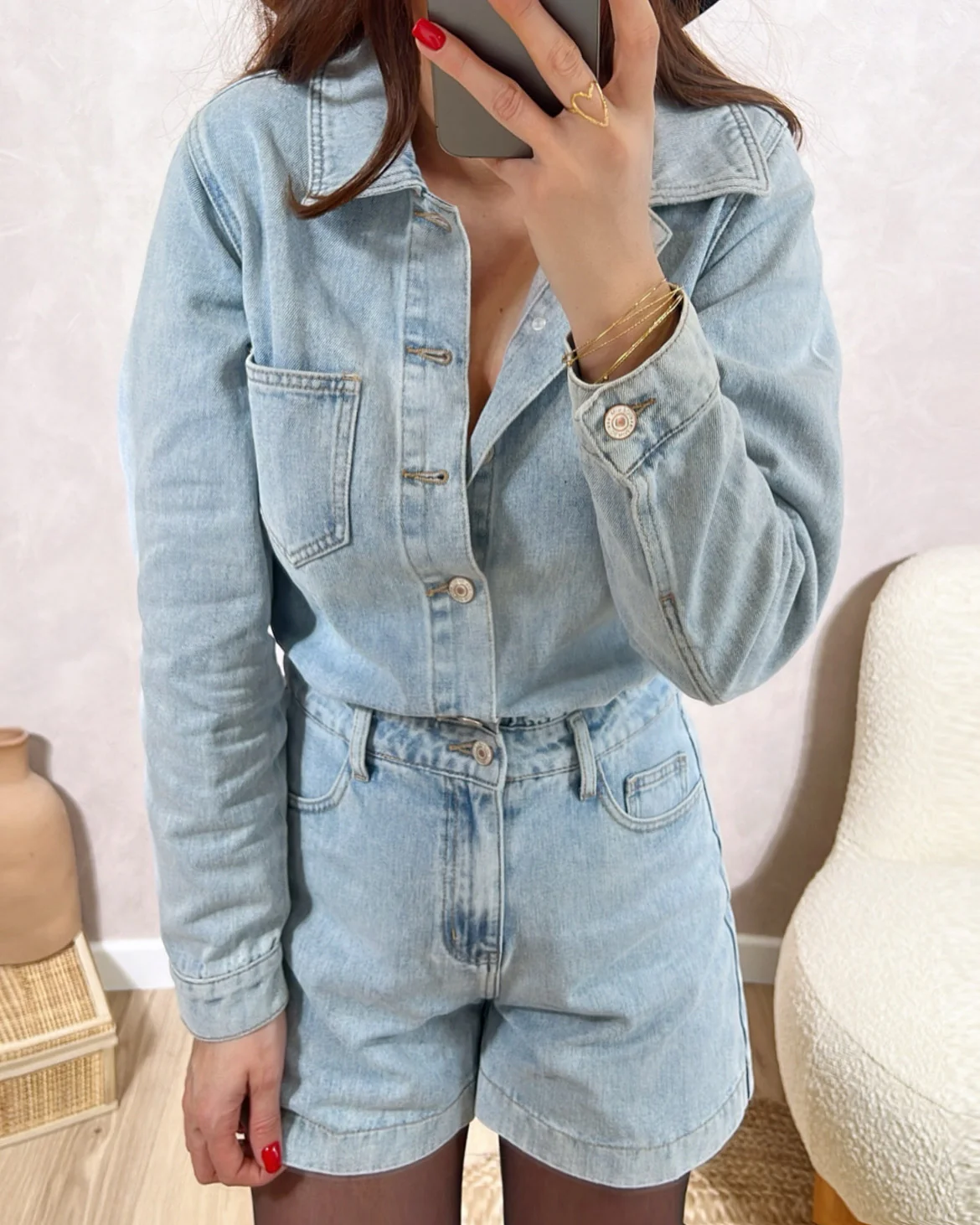 Combishort Tomboy• Manches longues avec bouton au poignet • Fermeture avec boutons • Poches devant et derrière• Le modèle mesure 1M65 et porte une taille S • XS: Longueur 79cm – Largeur 44cm• S: Longueur 81cm – Largeur 47cm• M: Longueur 83cm – Largeur 49cm• L: Longueur 84,5cm – Largeur 51cm• XL : Longueur 85,5cm […]