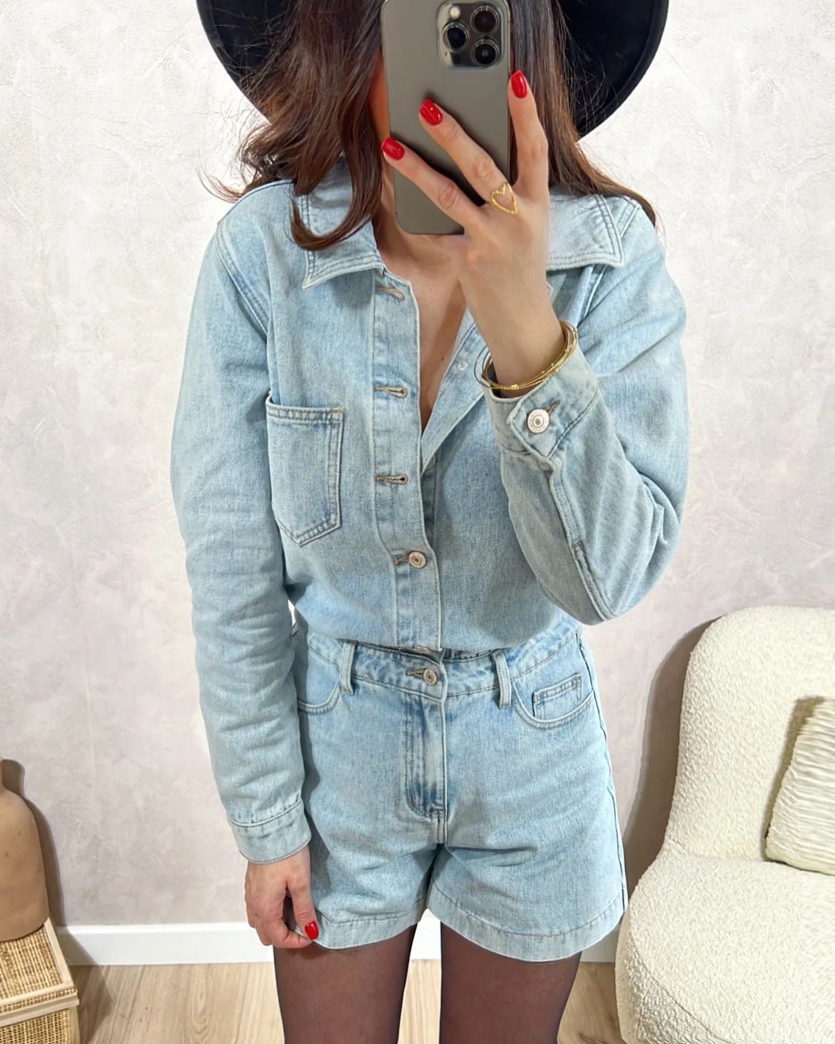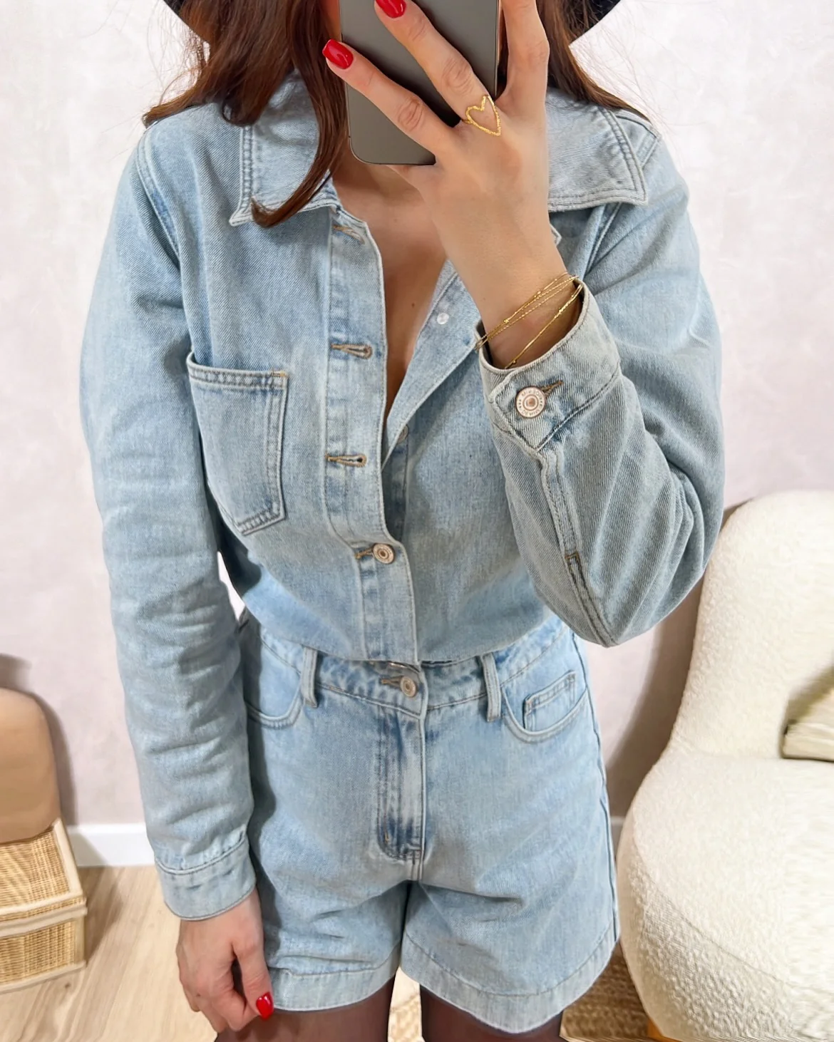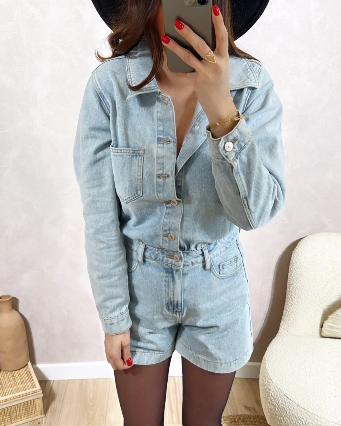 Combishort Tomboy• Manches longues avec bouton au poignet • Fermeture avec boutons • Poches devant et derrière• Le modèle mesure 1M65 et porte une taille S • XS: Longueur 79cm – Largeur 44cm• S: Longueur 81cm – Largeur 47cm• M: Longueur 83cm – Largeur 49cm• L: Longueur 84,5cm – Largeur 51cm• XL : Longueur 85,5cm […]